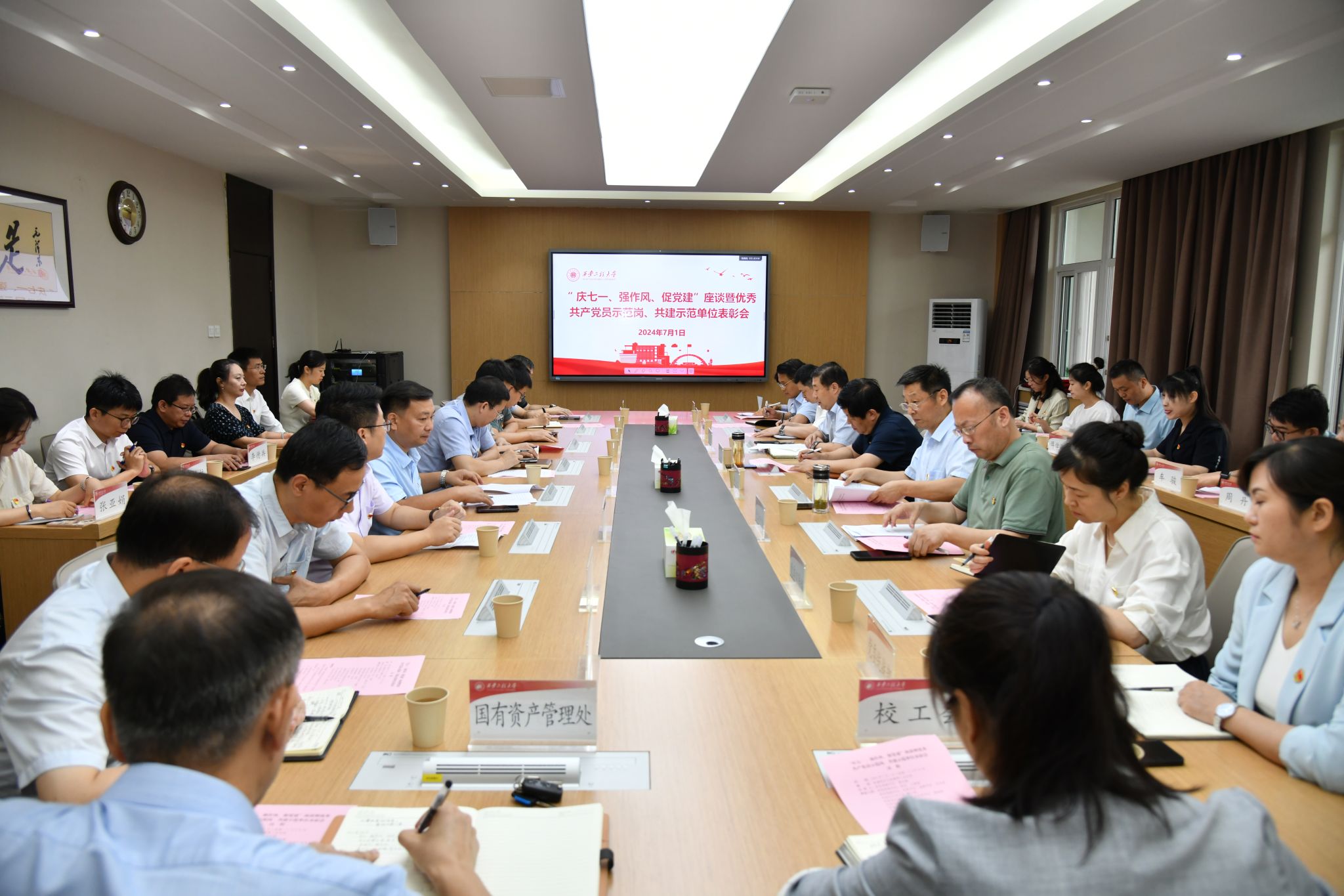 6月24日上午,后勤管理处(集团)党总支在临潼校区行政楼428会议室组织开展服务保障(功能型)党支部揭牌、党纪学习教育答题活动表彰、后勤信息宣传员聘任等仪式。校党委副书记殷永建出席会议,组织部部长黄海峙、宣传部部长王鸣媛、后勤领导班子成员及党员职工代表参加会议,会议由后勤管理处(集团)党总支书记杨森主持。会议首先进行服务保障(功能型)党支部揭牌仪式。杨森对党支部成立目的、筹备情况、人员构成、组织机构...