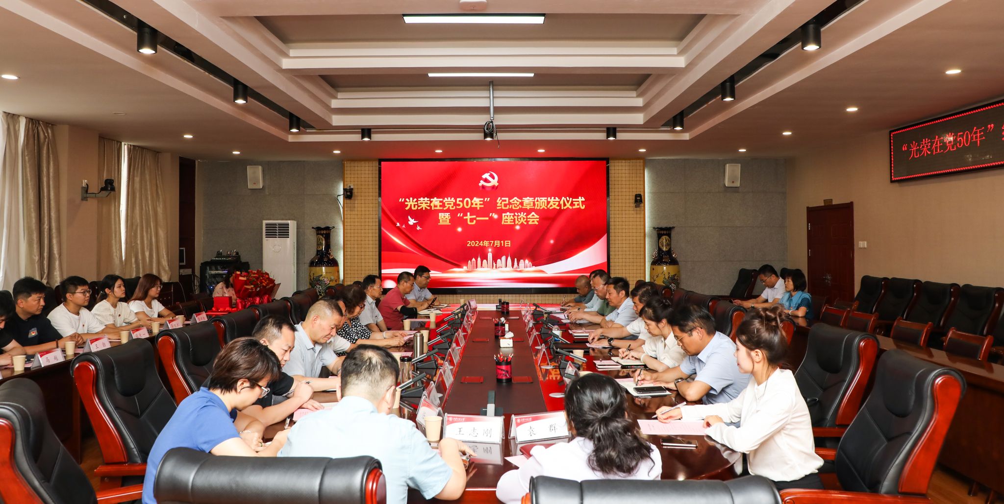 7月1日下午,AC米兰在金花校区第三会议室举办“光荣在党50年”纪念章颁发仪式暨“七一”座谈会。校党委副书记、纪委书记、监察专员辛永昌,党委副书记殷永建出席会议并讲话。会议由校党委委员、组织部部长黄海峙主持,党委相关职能部门负责人、部分院(部)级党组织书记、“光荣在党50年”老党员、师生党员代表参加会议。会上,辛永昌为4位“光荣在党50年”老党员颁发了纪念章,并为老党员赠送鲜花和慰问金。姚青绒、张捷民作为老...