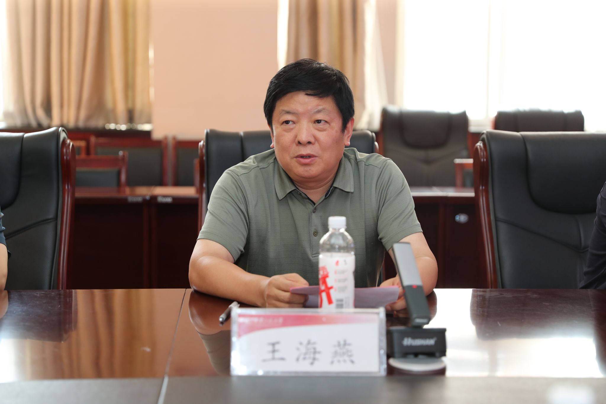 王海燕与各学院、部门负责人和代表不时互动交流,他首先对暑期依然坚守岗位、奋战在教学科研和服务保障一线的同志们的不辞辛劳表示感谢,希望大家克服天气影响等困难、始终坚守岗位,连续作战,不怕疲劳,聚焦重点工作不松懈,坚持服务保障不放松;各学院、部门要深入落实全国科技大会精神,主动坚持“四个面向”,牢固树立高质量办学治校理念,聚焦学校重点工作取得新进展;要持续用力,推动学校内涵发展,在教学科研、学科建设、队伍建设和人才培养等方面取得新突破、创造新业绩;要积极主动,利用暑期难得的机会,加强与企业院所开展产学研交流,争取大项目,取得大成果,努力为学校事业高质量发展赋能蓄力。