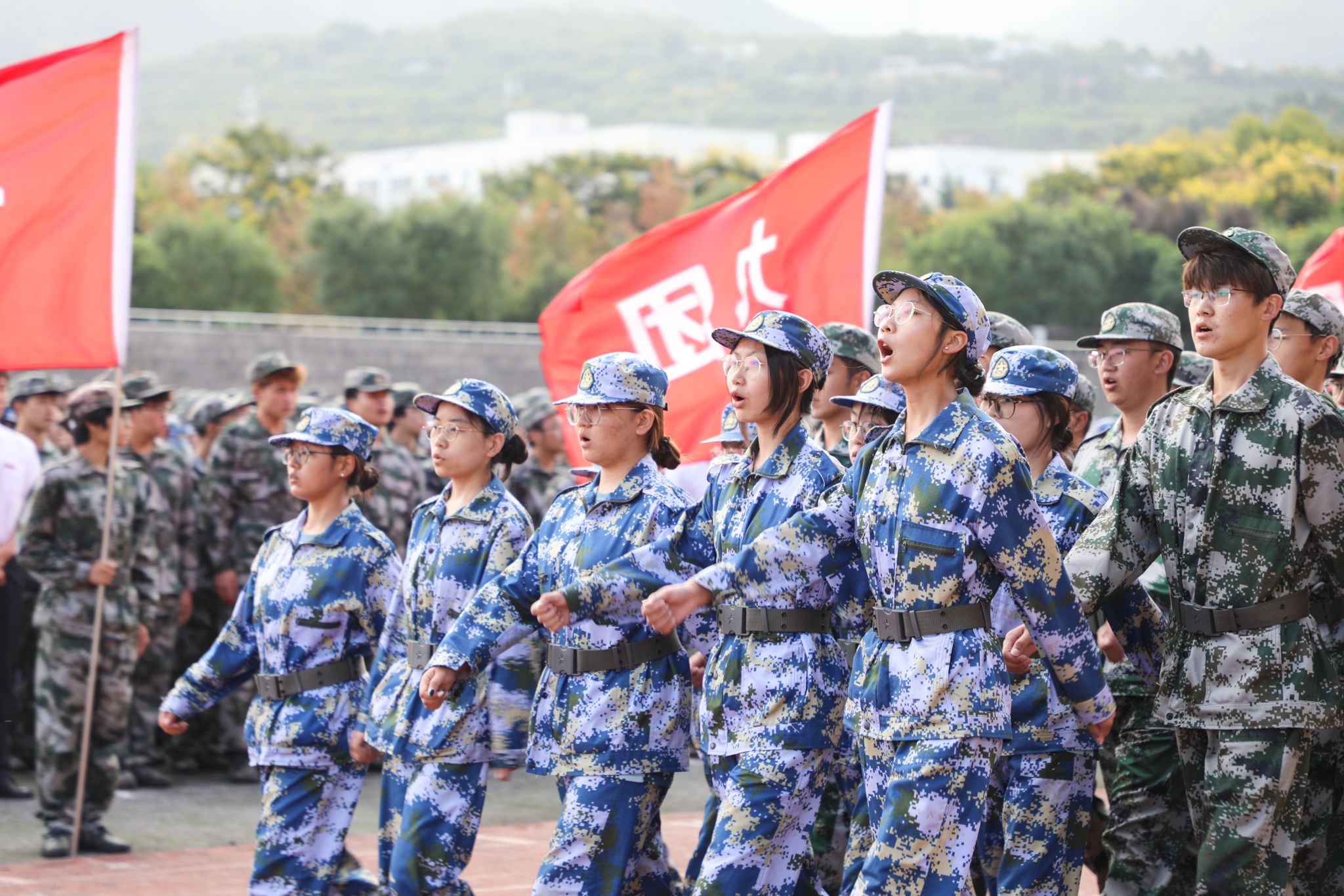军训旅依次进行队列歌曲展示和班排面单个军人队列动作展示,同学们军姿严整、队伍整齐、口号洪亮、纪律严明、士气高昂,充分展示了本次军训工作取得的丰硕成果。