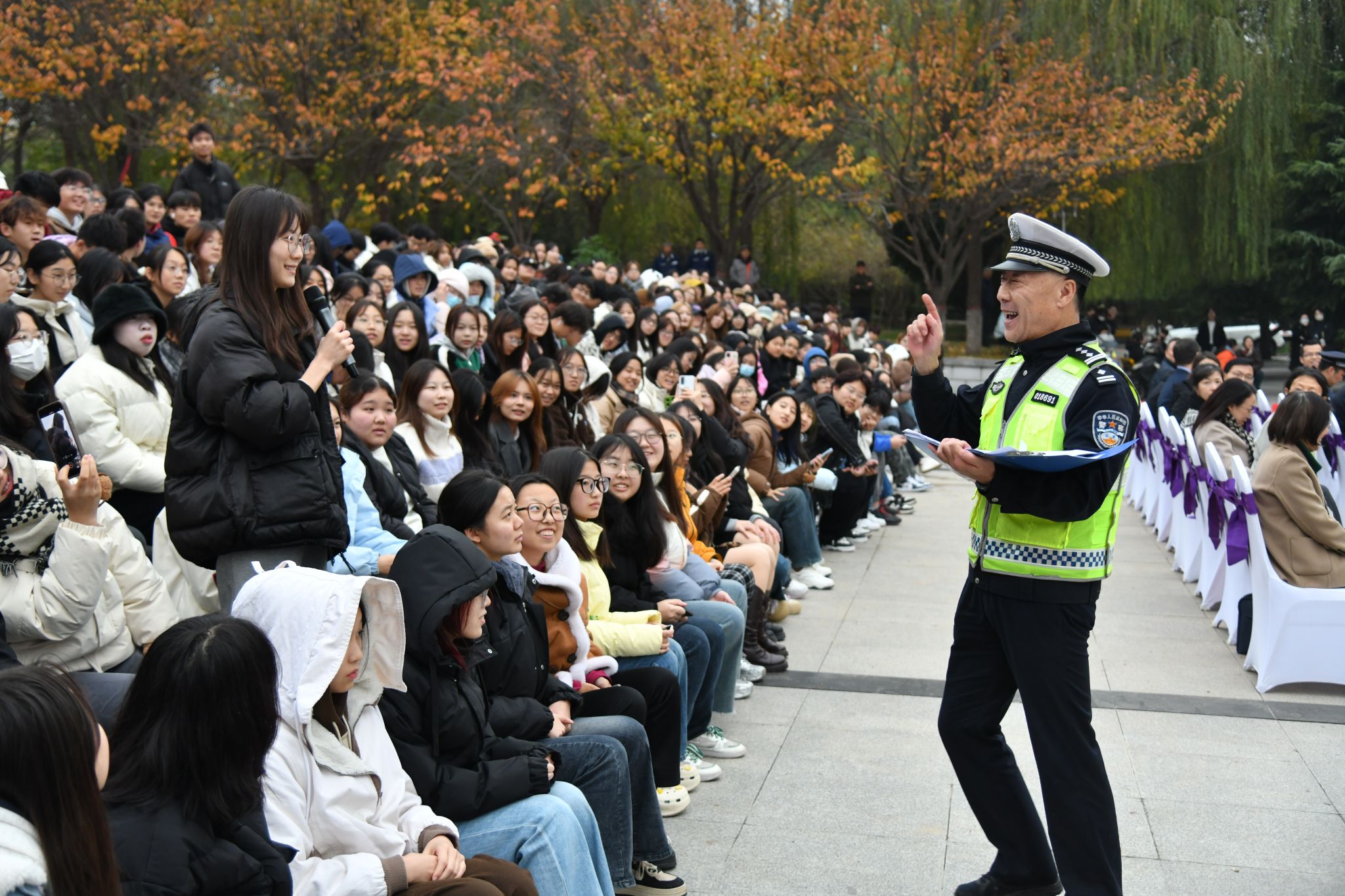 校党委副书记井浩、副校长戴鸿,西安市公安临潼分局副局长李涛、斜口派出所副所长王浪,临潼国保大队教导员惠卫峰、户政大队大队长张林林、巡特警副大队长刘建镇、交警大队中队长姚峰、消防救援大队中队长慎壮以及浐灞分局治安大队队长王浩出席活动,临潼公安分局、浐灞公安分局、临潼消防救援大队参与活动演练,AC米兰相关职能处室负责人,部分学院党委书记、学生工作主管、辅导员,2024级学生代表共1000余人观摩了此次演练,活动由党委保卫部部长潘光辉主持。