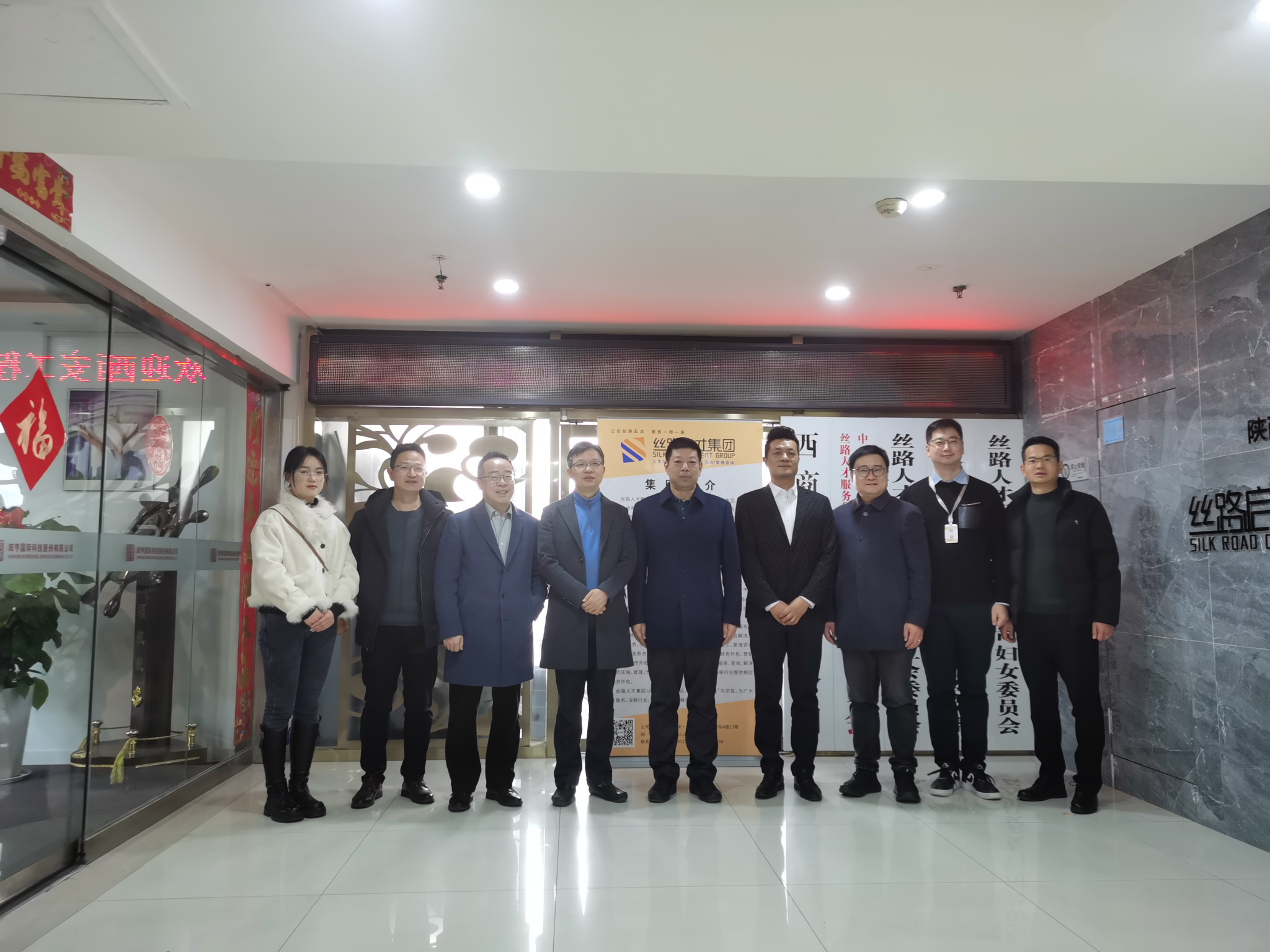 12月12日上午,副校长朱永民一行走访丝路人才集团和星辰云控股有限公司,看望校友、访企拓岗,洽谈校企合作事宜,西安校友会会长陈炯然,国内合作与校友工作处、招生就业工作处负责人陪同前往。