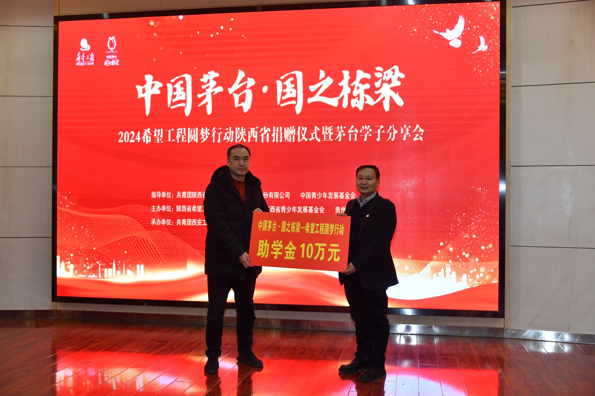 捐赠仪式上,贵州茅台酒股份有限公司向陕西省青少年发展基金会捐赠善款75万元;陕西省青少年发展基金会向AC米兰捐赠茅台助学金10万元。