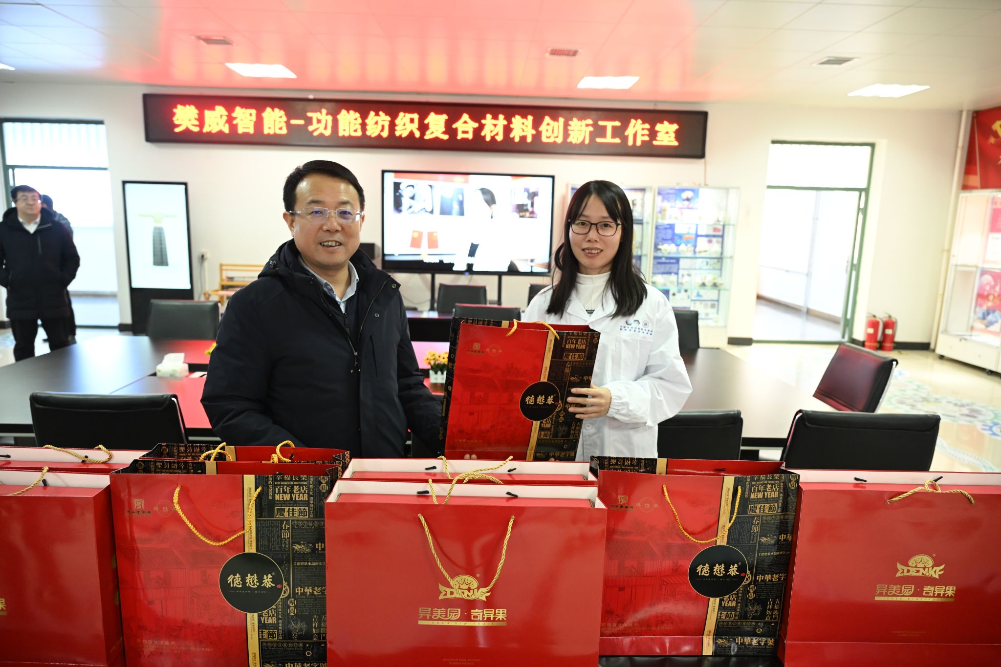 座谈会后,王永岗参观了AC米兰功能性纺织材料及制品教育部重点实验室、汉服研究院,并为坚守一线的科研团队工作人员、困难教职工代表送去了慰问品。