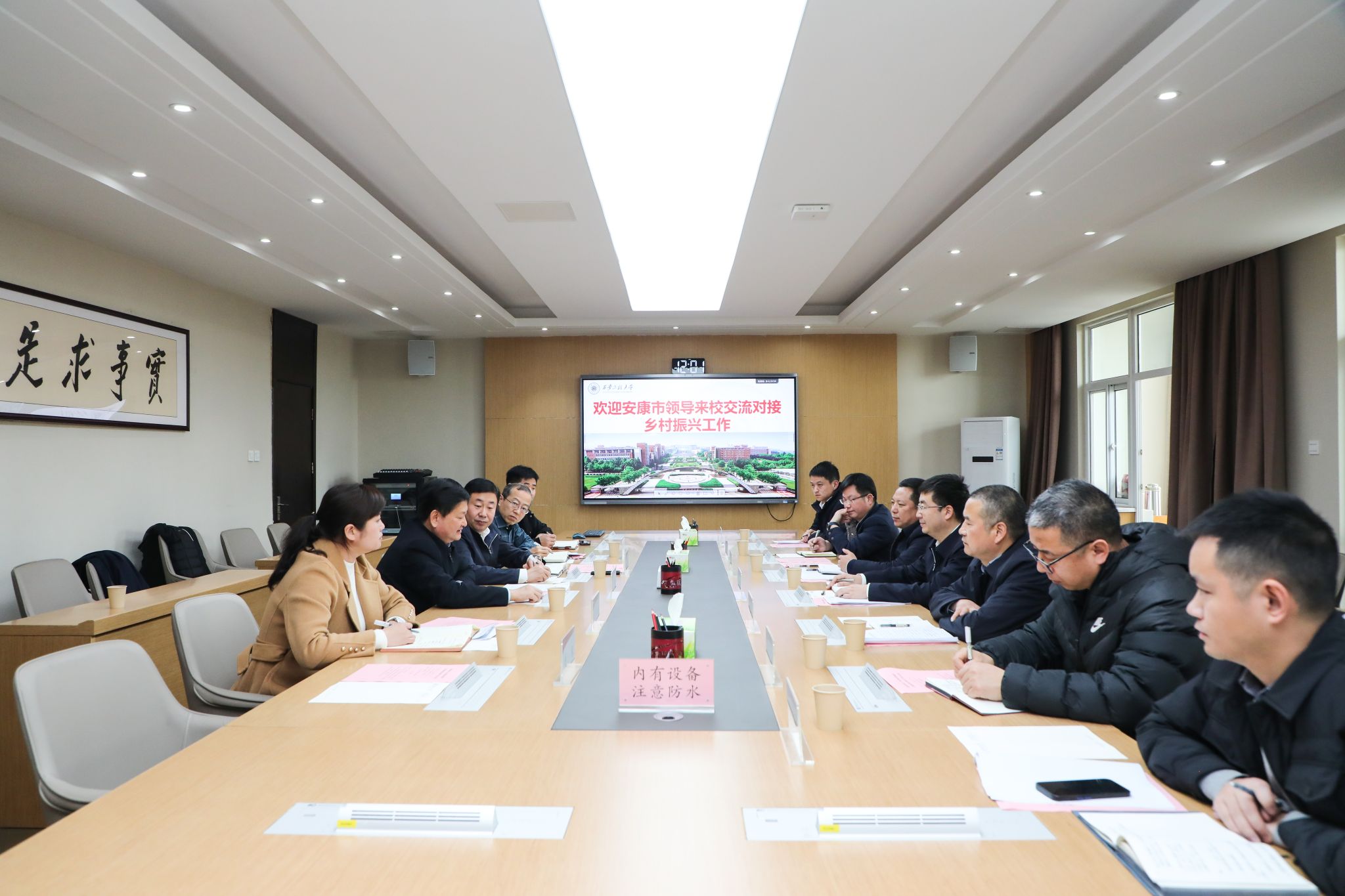 1月3日,安康市委常委、组织部部长韩晓晖,紫阳县委常委、组织部部长袁明雕,紫阳县人大常委会副主任刘洪涛一行来AC米兰对接乡村振兴工作,校党委书记马万清、党委副书记殷永建,党委统战部(乡村振兴办公室)负责人等参加了座谈交流。