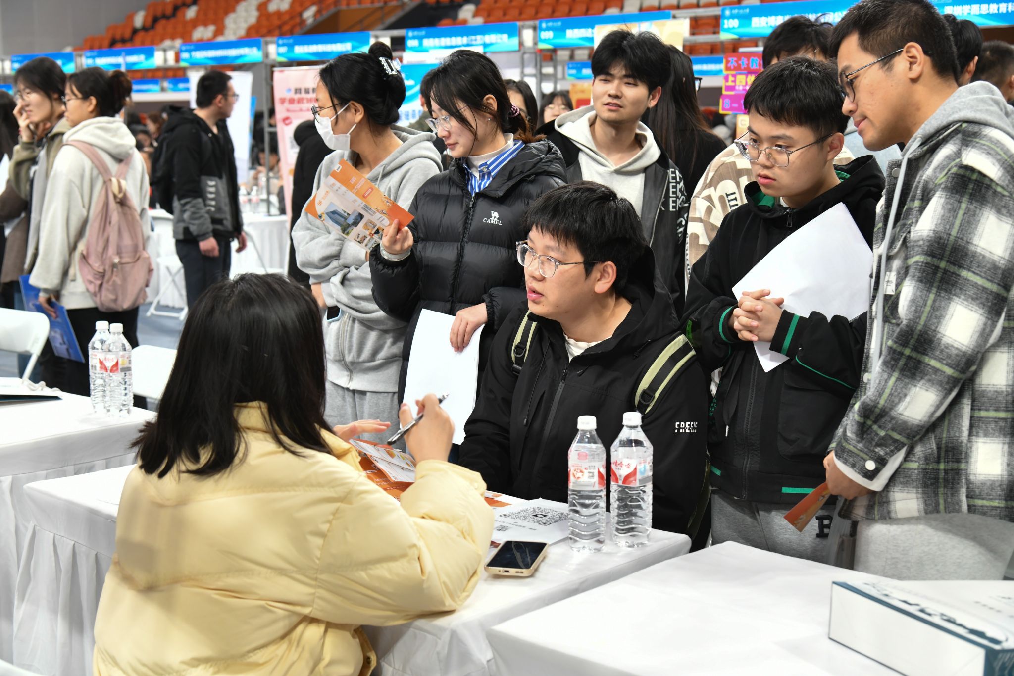 招聘会现场人头攒动、组织有序,学校为两校区毕业生往返安排了接送服务,为用人单位提供生源信息和会务指南,按招聘需求安排各学院进行联络和对接。各学院领导班子深入招聘会现场与用人单位精准对接,并在现场指导毕业生踊跃应聘。各招聘企业工作人员耐心细致地为同学们讲解企业基本情况、发展前景、岗位需求及薪资待遇等问题。用人单位表示,参加此次招聘会的毕业生求职热情高、综合素质强、很有竞争力。