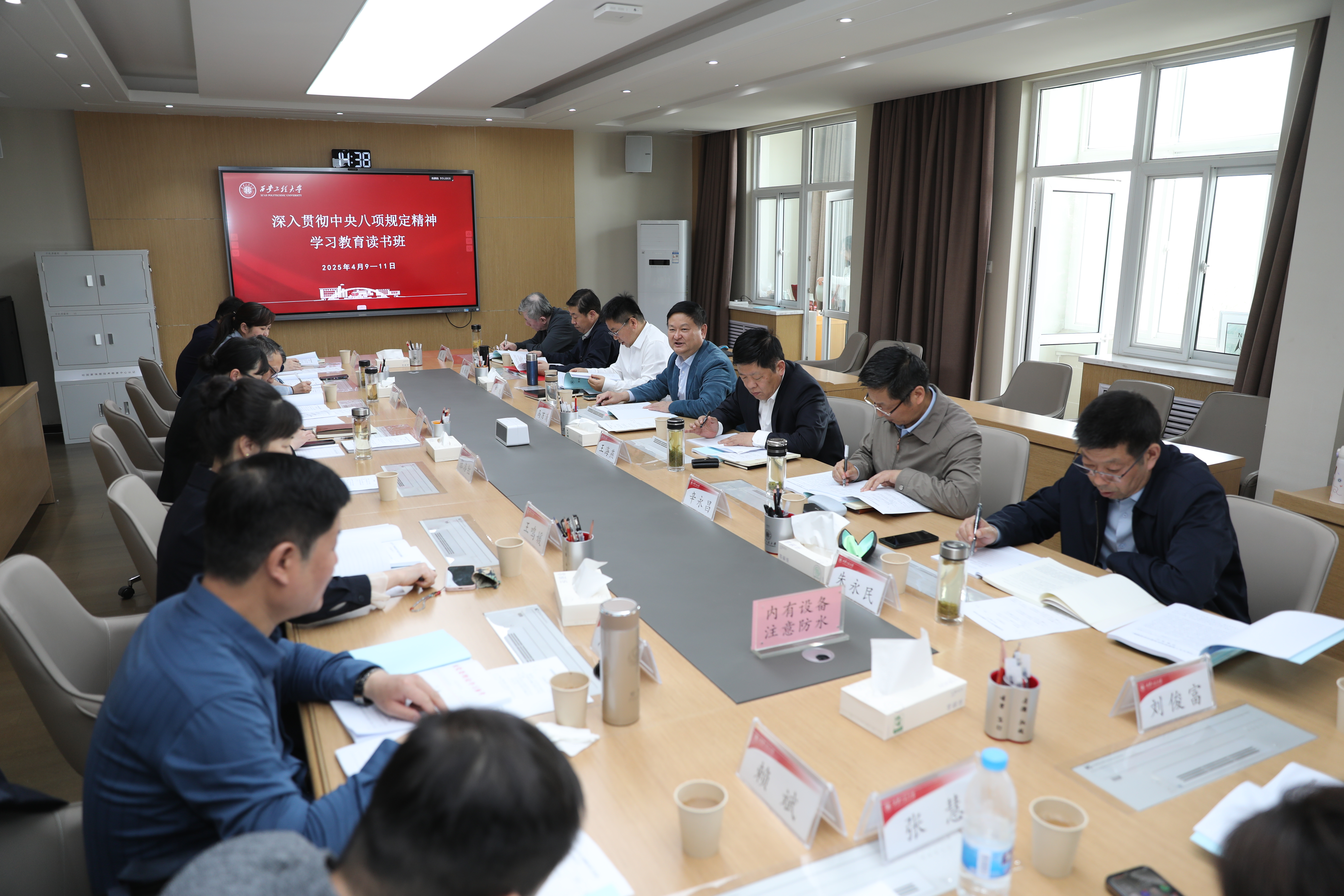 4月9日至11日,学校党委举办深入贯彻中央八项规定精神学习教育读书班。校党委书记马万清作动员讲话,校党委副书记、校长王海燕主持开班式。读书班以校、院两级党委理论学习中心组为单位,采取专题辅导、观看警示教育片、分组集中学习、专题研讨、个人自学相结合的方式进行,期间邀请陕西省委党校卢飞鹰教授作党的作风建设专题辅导报告,全体校领导、处级干部、党支部书记参加读书班。