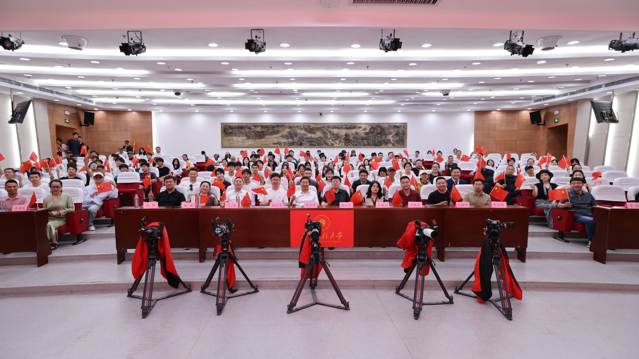 剧目策划方、制片方、投资方、剧作方等负责人分别致辞,总导演及部分演员上台分享了拍摄感受,尤其分享了通过参与演出对革命先辈的崇敬之情和对伟大抗战精神的深刻理解。最后,校企、校地代表和剧组演职人员代表共同为《山河回响》开机揭幕。