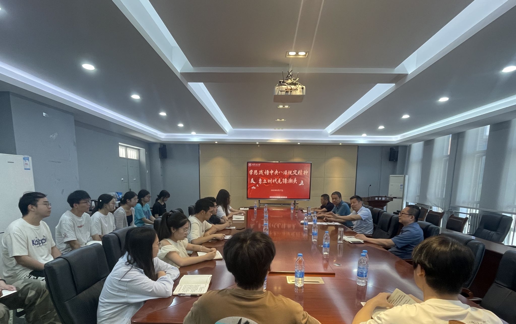 辛永昌围绕深入贯彻中央八项规定精神学习教育,结合理学院实际,以“科技报国与青年使命”为主题,为在场师生讲授了一堂生动的思政课。他勉励理学院学子要深刻认识基础学科在国家发展中的战略地位,要将个人理想融入国家需求。他强调,一要树立理想信念,厚植家国情怀;二要坚守主责主业,深耕学业根基;三要培育健全人格,融入校园文化。最后,他要求同学们要以实际行动践行中央八项规定精神,将“求真务实”融入思想与实践,以纪律意识强化作风建设根基,在学思践悟中摒弃形式主义,以钻研精神深耕知识文化领域,在知行合一中筑牢思想防线。