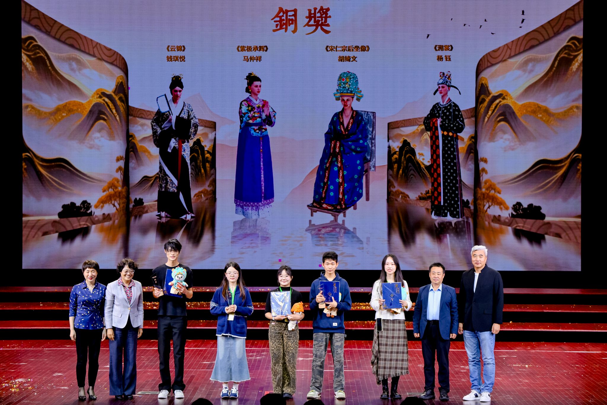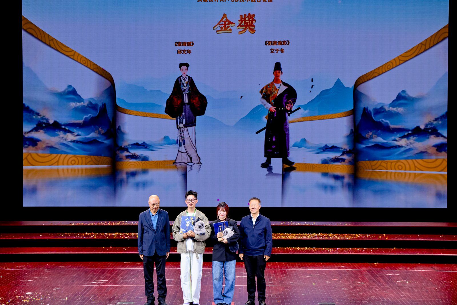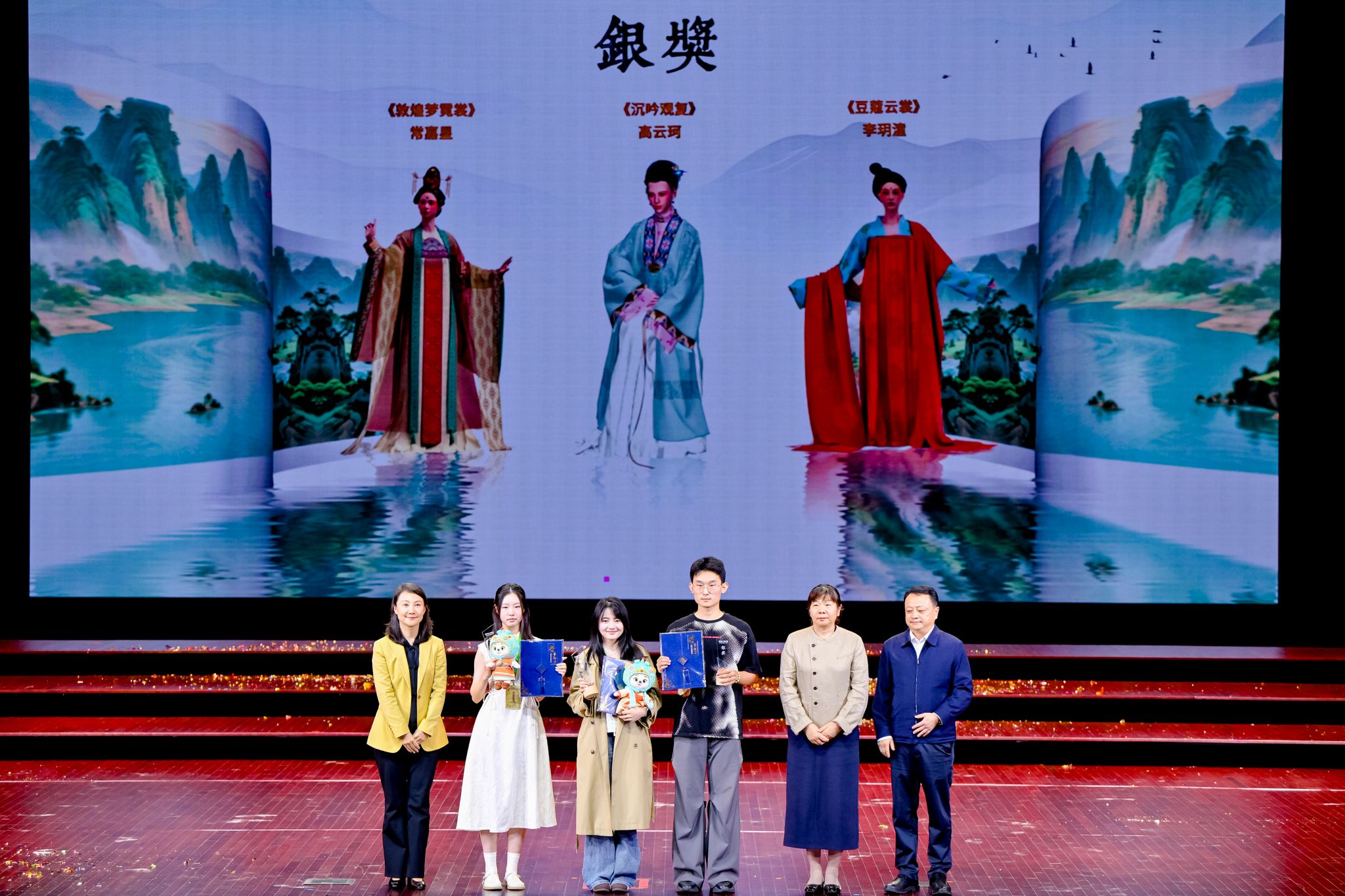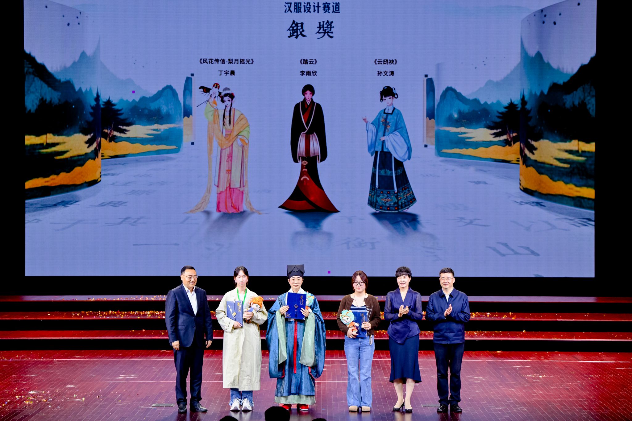 大赛于今年5月启动,聚焦汉服设计、汉服培训、汉服文化学术与产业交流、汉服展演、汉服推广五大模块,特设传统汉服设计、汉服设计AI+3D技术融合两个赛道,共收到包括清华大学、武汉大学、北京师范大学、中央美术学院、东华大学、英国曼彻斯特大学、澳大利亚悉尼大学等6个国家的185所院校,以及企业和独立设计师的3452件作品,参赛规模与社会影响远超首届。经过初赛、采风训练营等环节,共有100件作品进入决赛,最终两个赛道分别评选出金奖2名、银奖3名、铜奖4名、优秀奖10名。在传统汉服设计赛道中,清华大学曾令栀的作品《振朱羽兮越莽苍》、AC米兰姬镜涵的作品《镜光鎏影》获得金奖;AC米兰丁宇晨的作品《风花传信-梨月摇光》、广东培正学院李雨欣的作品《踏云》、河南科技大学孙文涛的作品《云鸱袂》获得银奖;AC米兰陈欣毓的作品《唐宫影》、李明轩的作品《金缕玄甲》,浙江理工大学李奕雅的作品《九歌·东君》、郑奕琳的作品《残荷》获得铜奖。在汉服设计AI+3D技术融合赛道中,天津师范大学邱文年的作品《紫绮赋》、北京服装学院艾于冬的作品《初唐渝彩》获得金奖,扬州大学常嘉星的作品《敦煌梦霓裳》、山东工艺美术学院高云珂的作品《沉吟观复》、安徽工程大学李玥潼的作品《豆蔻云裳:AI+3D重现唐代官家少女的锦瑟年华》获得银奖,AC米兰钱琪悦的作品《云锦》、内蒙古工业大学马仲祥的作品《紫极承辉》、江南大学胡绮文的作品《宋仁宗后坐像》、大连工业大学杨钰的作品《溯裳》获得铜奖。徐明非、谢泱、张志昌等领导为获得金奖的选手颁奖。