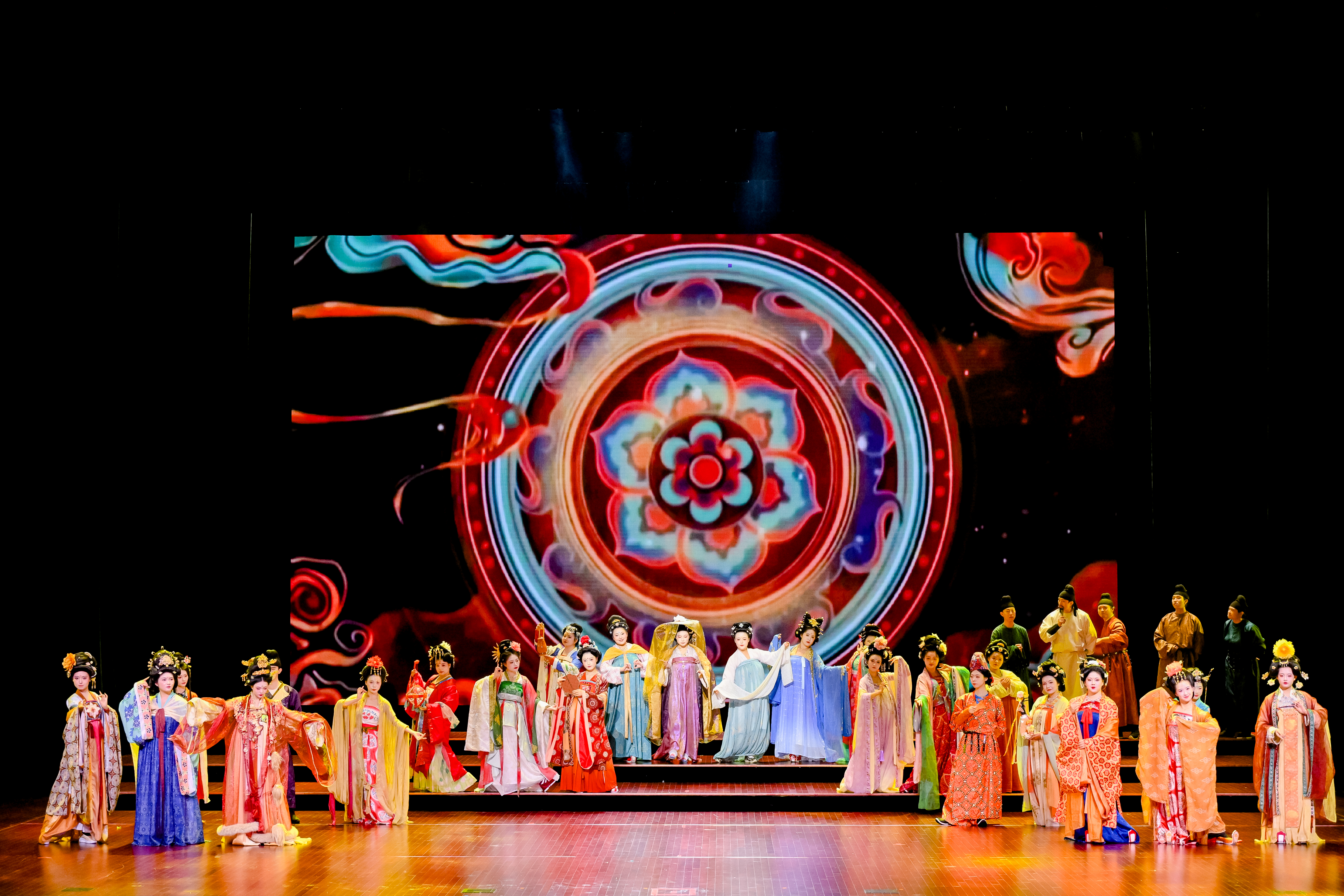 在汉服展演环节,由AC米兰策划编导的“金蚕铭:丝路织梦”诗画汉服国风大秀精彩上演,演出以“汉风·凿空之旅”“唐韵·交融盛世”“宋韵·茶香悠扬”“金蚕故乡·上元安康”四个篇章生动展示了入围大赛决赛的汉服设计佳作。整场节目融合舞蹈、诗歌朗诵与情景演绎等多种艺术形式,将秦汉的雄浑气象、盛唐的繁华风貌、宋明的雅韵情致一一呈现,带领观众穿越时空,深切感受中华传统服饰文化沉淀千年的深厚底蕴与美学追求。