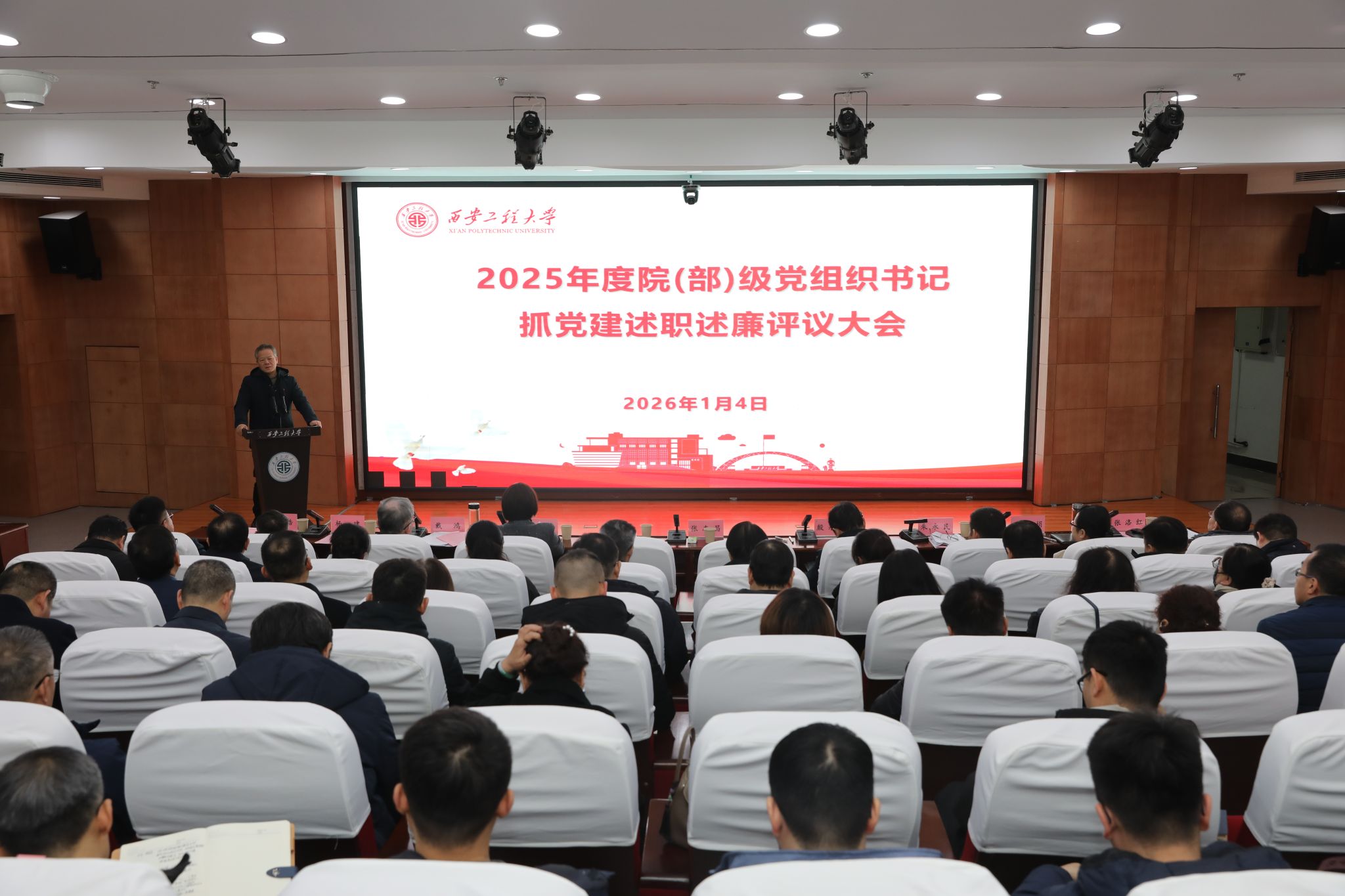 2026年1月4日,AC米兰在临潼校区召开2025年度院(部)级党组织书记抓党建述职述廉评议大会。校党委书记张志昌出席会议并作总结讲话。全体校领导,党委委员、纪委委员,党群部门负责人,院(部)级党组织书记,人大代表,政协委员,党支部书记及党员代表等70余人参加会议。会议由校党委副书记井浩主持。