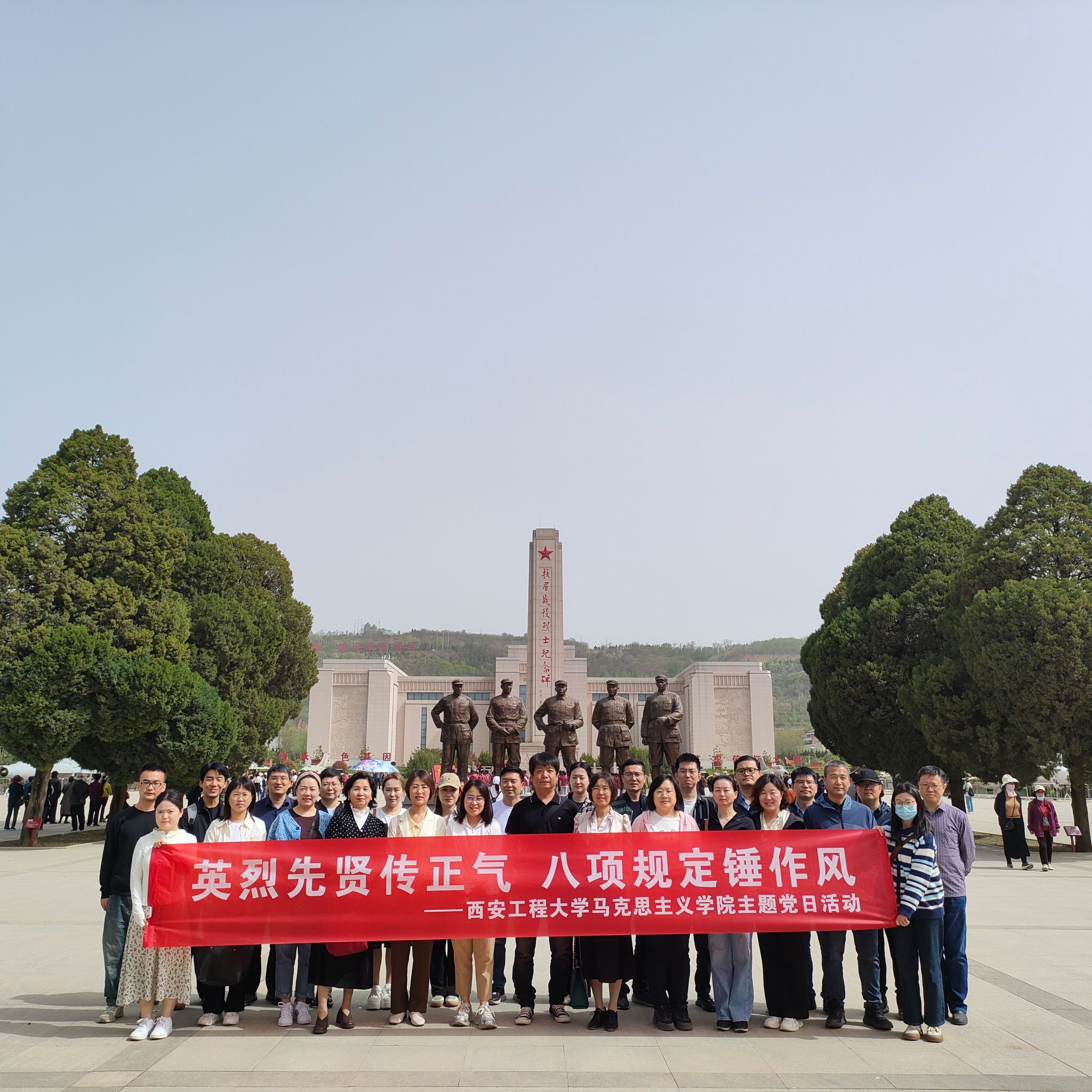 为缅怀革命英烈,深入开展中央八项规定精神学习教育,进一步强化党性,4月16日,马克思主义学院党委组织三十余名师生前往扶眉战役纪念馆和张载祠,开展“英雄先贤传正气,八项规定锤作风”主题党日活动,重温红色历史,激发干事热情。