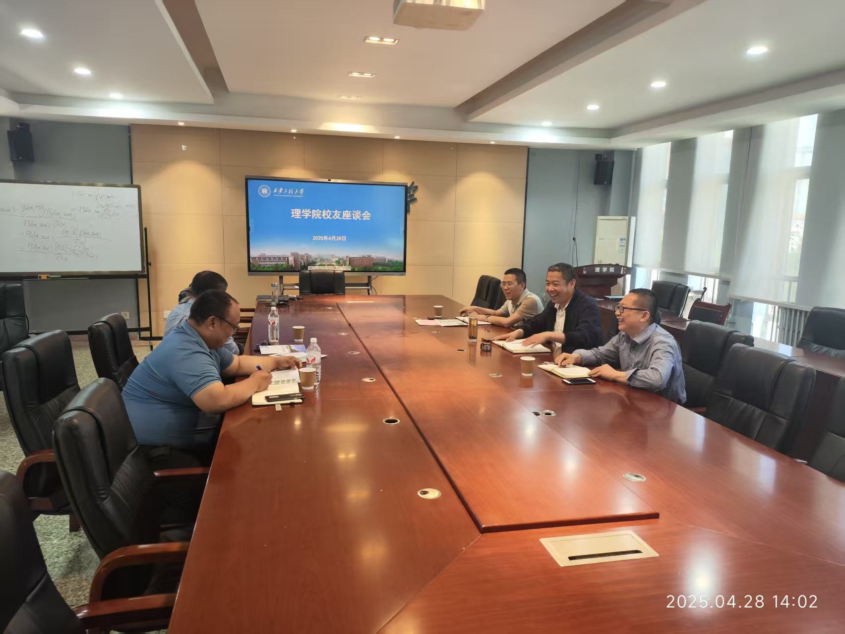 会上,刘玉森对张丹东、郝力光两位校友的到来表示热烈欢迎。他谈到,校友是学校和学院发展的宝贵资源,校友的成功是母校的荣耀,校友企业的成长则是校企共赢的基石。学院高度重视同校友的密切联系,持续深化校友资源整合,积极拓展校友与就业工作的联动。希望通过此次座谈会,进一步加强学院与校友之间的联系,借助校友的丰富经验与广泛资源,为毕业生搭建更广阔的就业平台,助力学院毕业生实现高质量充分就业。同时邀请两位校友企业来参加理学院5月14日举办的专场招聘会。