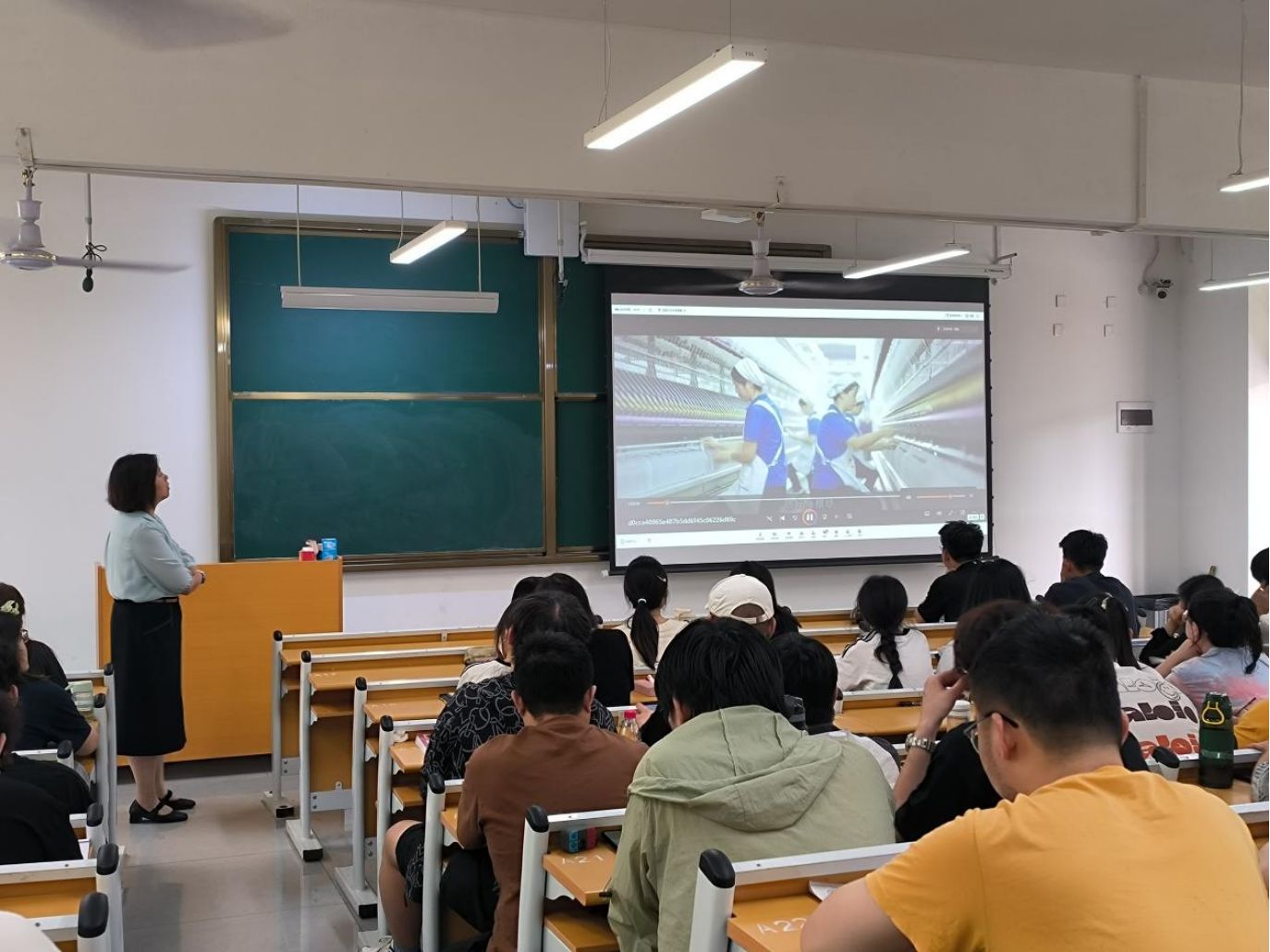 陈红娟从企业概况与发展历程、纺织专业知识和技术、企业文化与价值观、职业规划与就业指导、纺织动态与发展趋势、工作经验分享等多个维度,结合自身丰富的从业经历和鲜活案例,向与会师生做了精彩分享。作为有着多年生产经验的一级工程师,她结合实际案例,详细讲解了新型纺织材料的研发过程、生产工艺优化方法以及纺织产品质量控制要点,并通过视频展示了企业现代化的纺织生产线,让学生们直观感受到先进设备和技术在纺织行业中的应用。同时,她从企业招聘的角度出发,结合纺织行业岗位招聘情况,详细讲解了职业规划与求职就业要点,深入剖析了面试中常见的问题及应对策略。