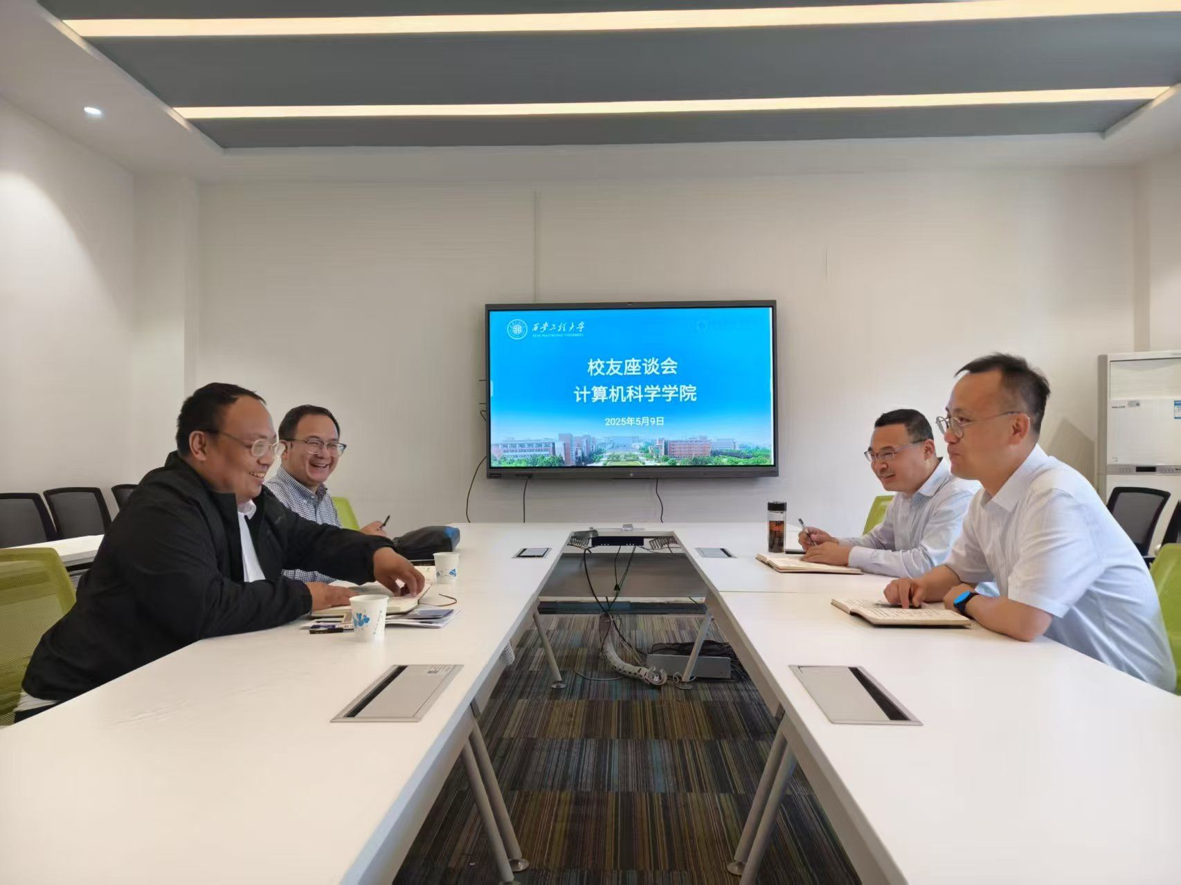 5月9日,计算机科学学院在临潼校区召开“加强校友工作,提升就业质量”校友座谈会,特邀AC米兰校友—晟智明途(陕西)人力资源有限公司执行总经理张丹东、西安利信工程咨询有限公司人资部经理郝力光返校座谈,计算机科学学院党委副书记闫小兵、赵勇进参加座谈会。