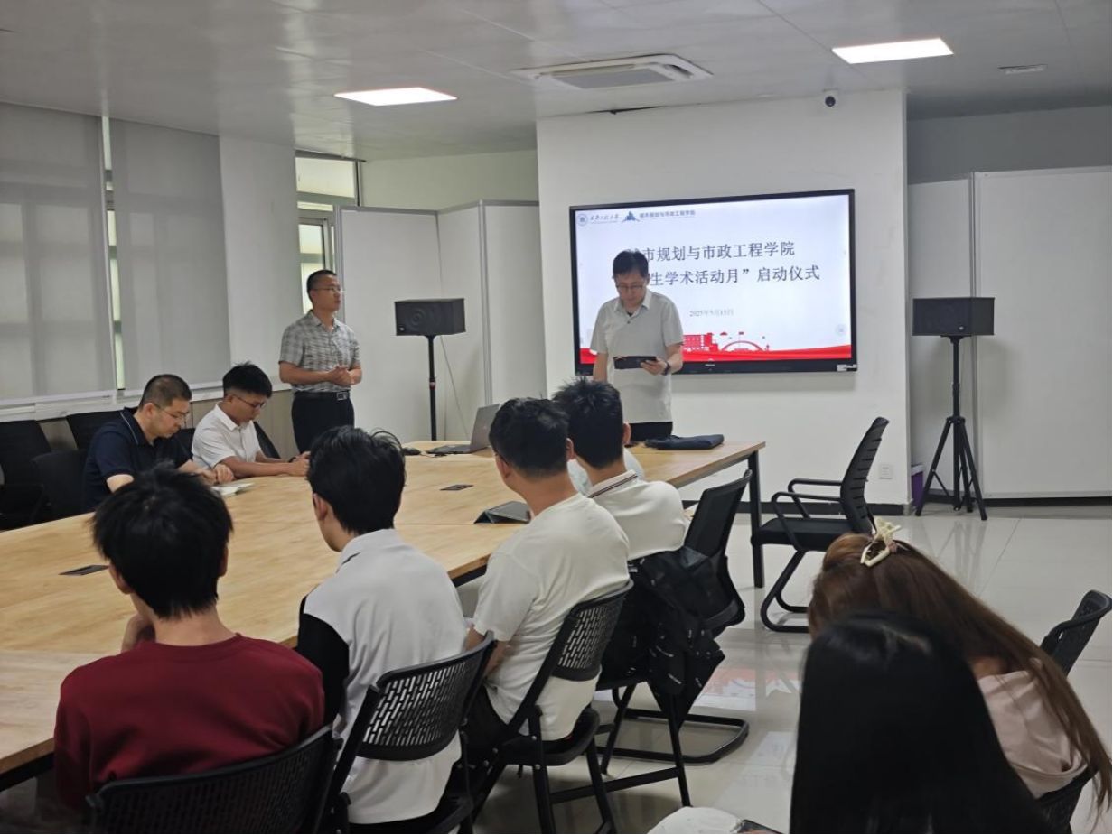 5 月 15 日,城市规划与市政工程学院“研究生学术月”系列活动启动仪式暨首场报告会举行。此次活动旨在拓宽研究生的学术视野,提升其科研创新能力,为学院研究生搭建一个高质量的学术交流平台。学院副院长房平、副院长杨涛、特邀嘉宾西安交通大学王志华教授以及学院 60 余名研究生参加,活动由杨涛主持。