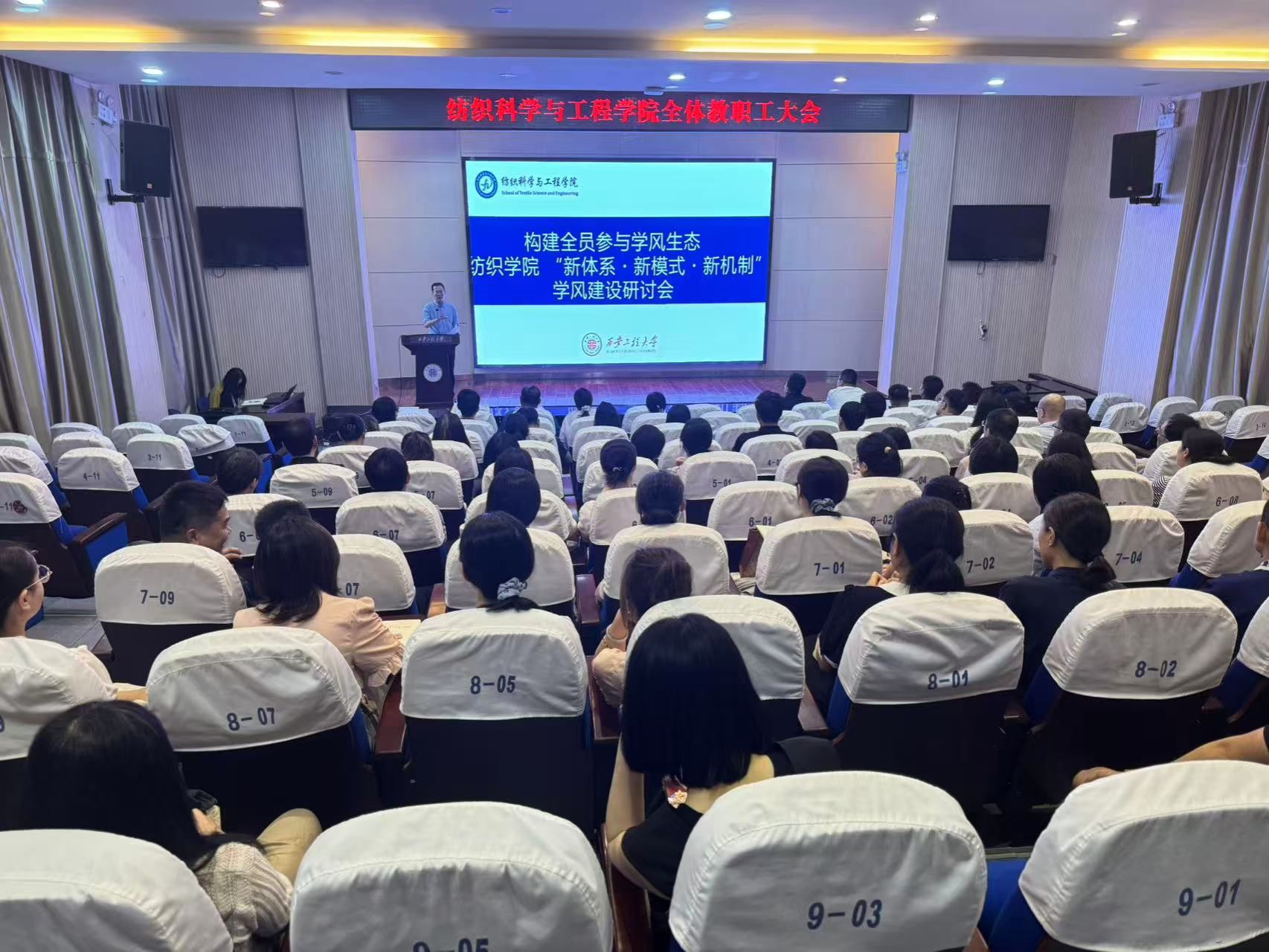 近日,纺织科学与工程学院于近期组织开展了学风建设大讨论系列专题活动。学院成立学风建设专项工作组,分三个阶段展开活动:动员部署阶段、讨论分析阶段、总结提升阶段。积极探索新形势下全体教职工协同共建的学风建设新体系、新模式与新机制,为人才培养质量提升注入新动能。