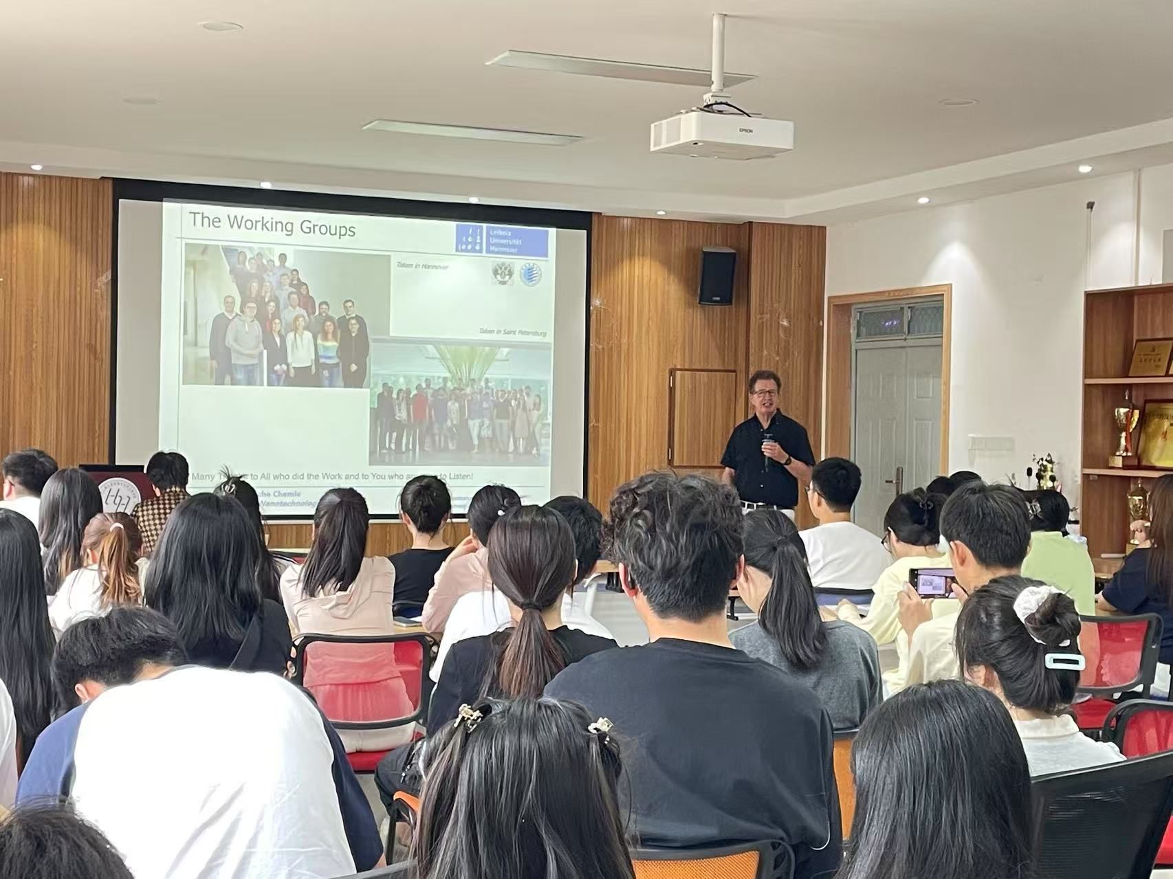 5月19日,国际光催化领域权威专家Detlef W. Bahnemann教授应邀做客“第59期经纬学术沙龙”。在环境与化学工程学院,Bahnemann教授以“Photocatalysis: A Personal Approach”为题作了精彩学术报告。陕西科技大学特聘教授、环境学院学术院长王传义教授,广西大学资源环境与材料学院学术带头人、中俄碳中和国际联合中心负责人潘家鸿教授陪同来访。AC米兰中文官网副校长、环境与化学工程学院张洛红教授,环境与化学工程学院院长武占省教授,以及学院众多教师和研究生参加了报告会。报告由环境与化学工程学院副院长武峥主持。
