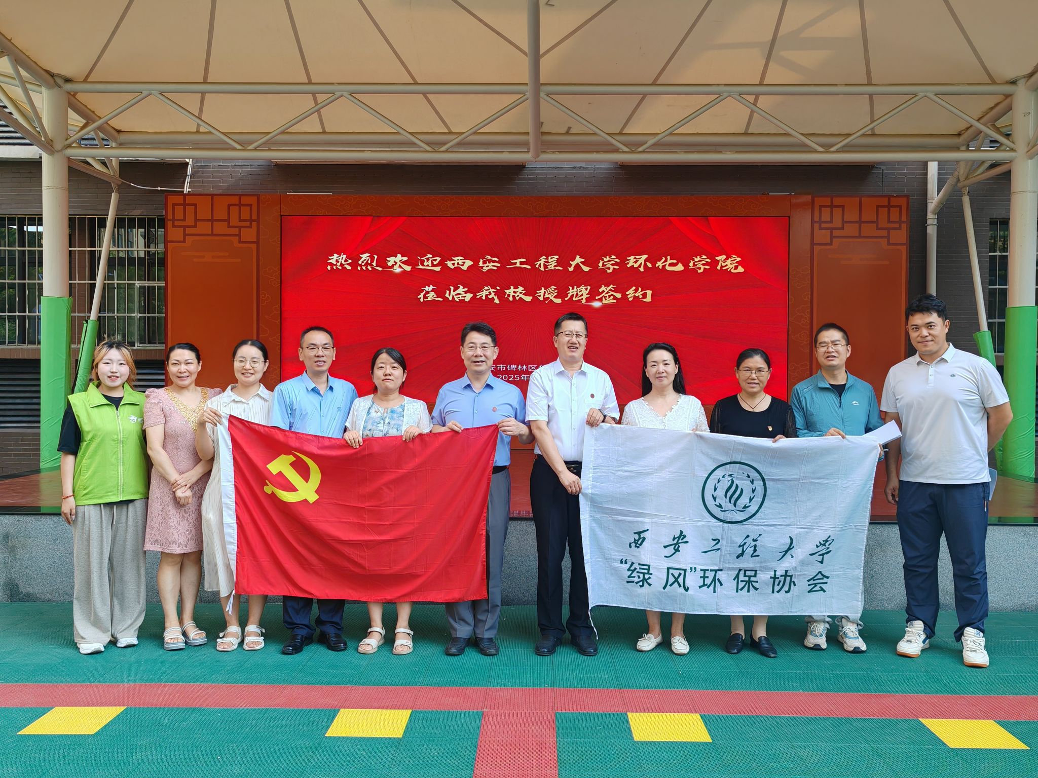 6月23日,环境与化学工程学院赴碑林区仁厚庄小学开展“青少年生态文明教育实践基地”暨“党建+志愿服务基地”授牌签约仪式。学院党委书记胡西民、副院长武占省、党委副书记林定武、学院部分教师代表和绿风环保协会志愿者代表出席活动。此次活动由仁厚庄小学德育主任车翻莉主持。