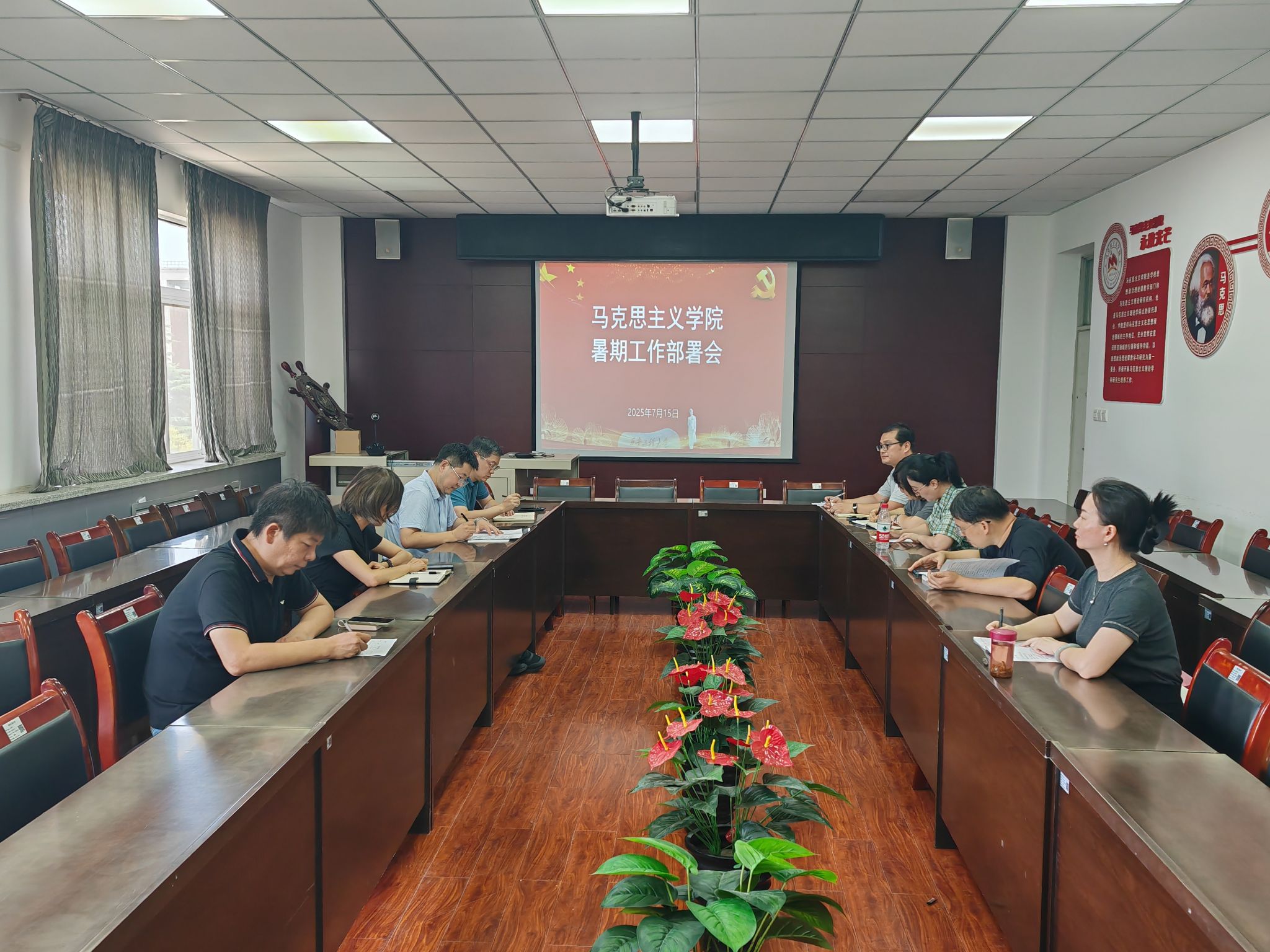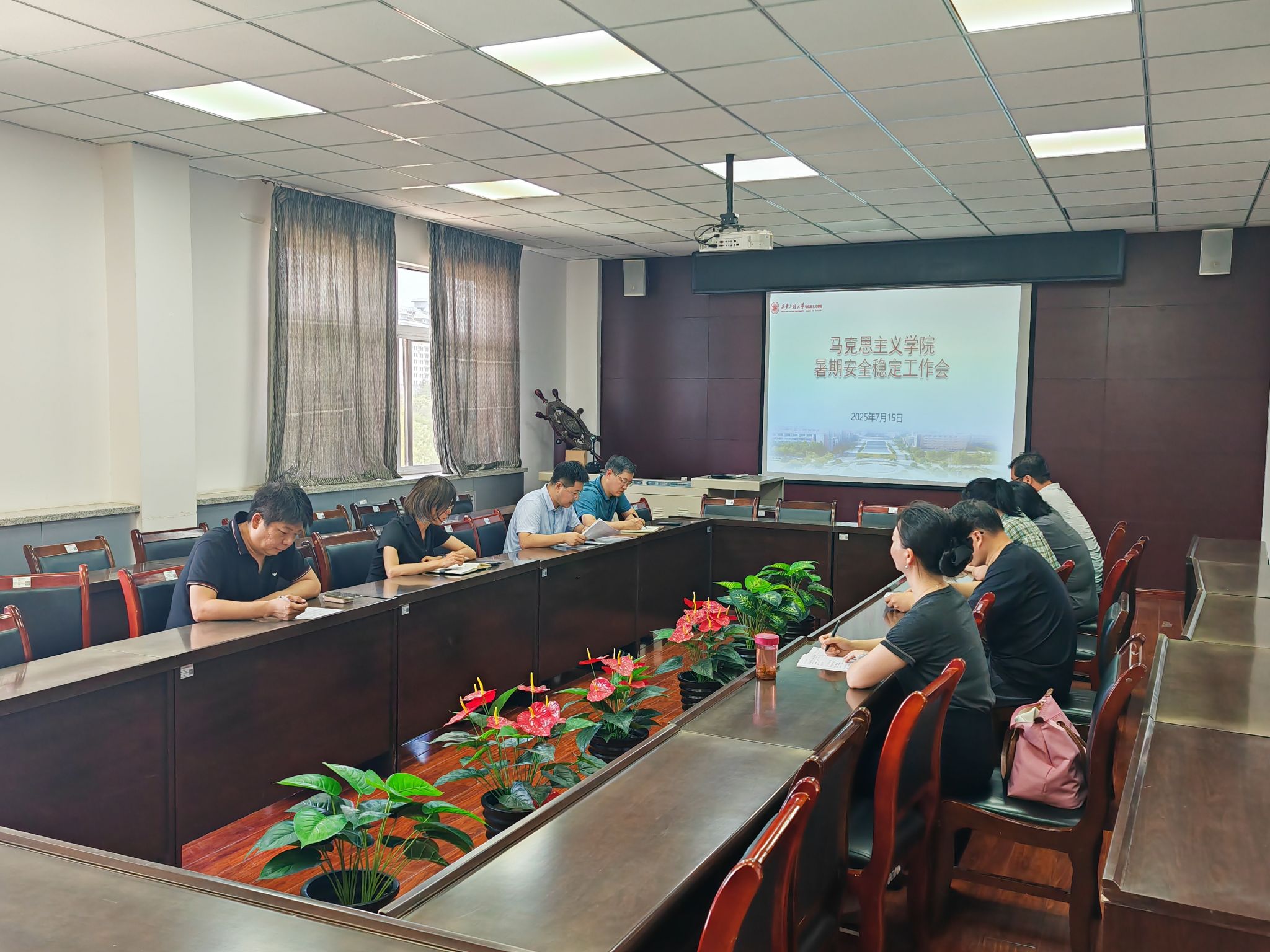 7月15日,马克思主义学院在临潼校区召开暑假安全稳定工作会议。学院班子成员、各教研室主任及行政人员参会,会议由学院党委副书记傅博娜主持。
