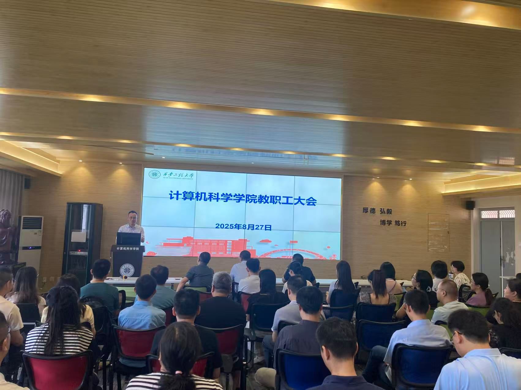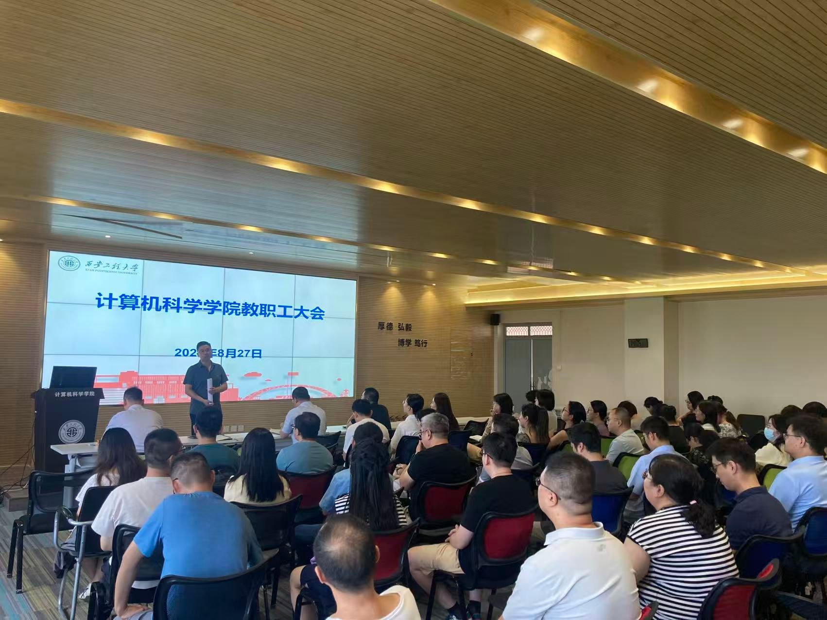 8月27日,计算机科学学院在临潼校区召开新学期全体教职工大会,梳理总结学院上半年取得的各项成绩和存在的不足,谋划部署安排新学期重点工作任务。学院党政班子成员依次就主管或分管的工作进行总结和安排布置。学院全体教职员工参会,会议由学院党委副书记闫小兵主持。