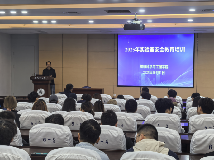 10月11日,纺织科学与工程学院在金花校区组织举办实验室安全教育专题培训。本次培训由学院资产与实验管理处、校稳定安全工作办公室联合主办,特邀西安安备思软件有限公司总经理刘涛担任主讲。学院党委书记李伟、副院长张鹏飞参加活动,2025级全体研究生、实验室管理人员等130余人到场学习。培训由张鹏飞主持。