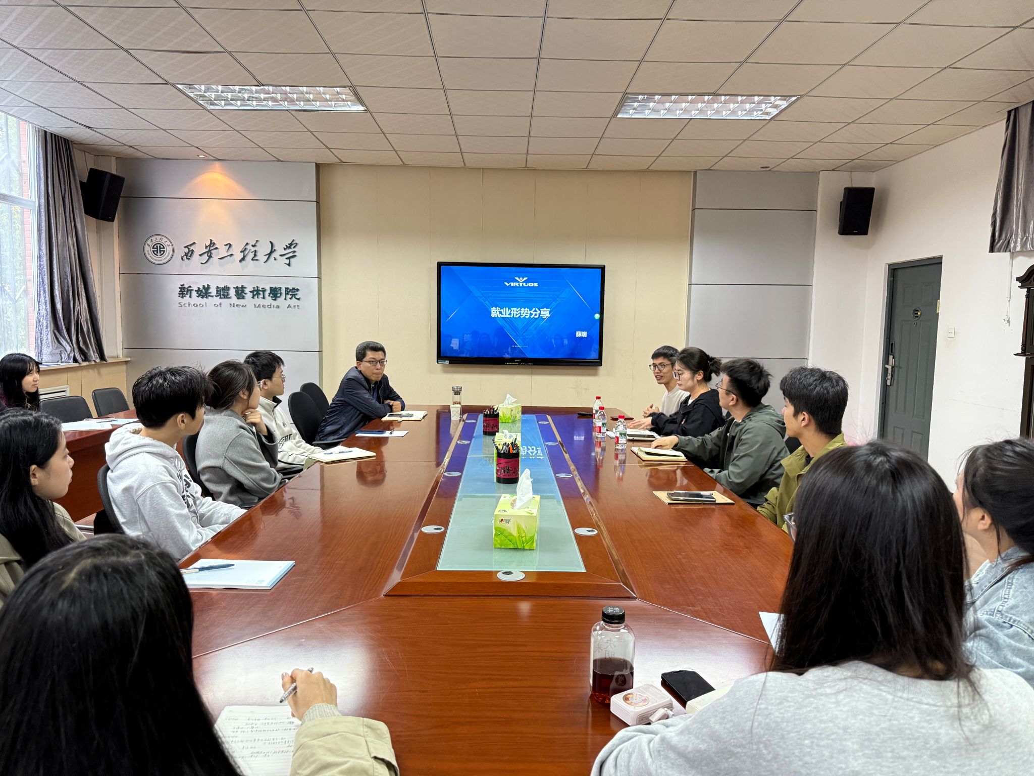 10月15日,新媒体艺术学院本科毕业生就业动员会在金花校区召开,学院党委副书记、就业辅导员、毕业班辅导员、2026届毕业班班干部参会。招生就业工作处高远、维塔士校园招聘经理薛瑞为毕业生就业指导提供专业支持。