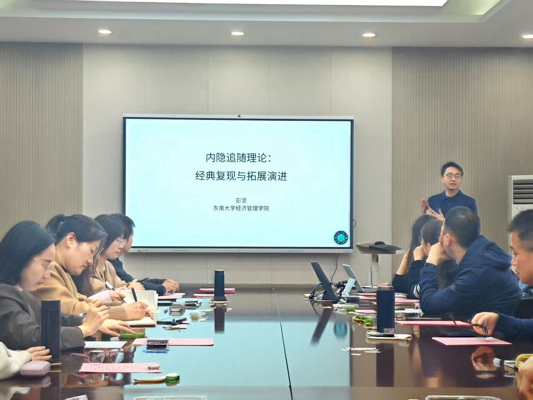 主题报告中,彭坚老师聚焦于其长期深耕的内隐追随领域,结合其研究体验与心得进行了主题为“内隐追随理论:经典复现与拓展演进”报告分享,通过对研究三部曲“心有灵犀”“意中人”“主动型内隐追随”的深入讲解,使听众对内隐追随如何影响领导员工互动方式以及后续的工作绩效、工作幸福感产生了深入的理解与思考,为大家系统推进科研工作提供了新的思路与参考。