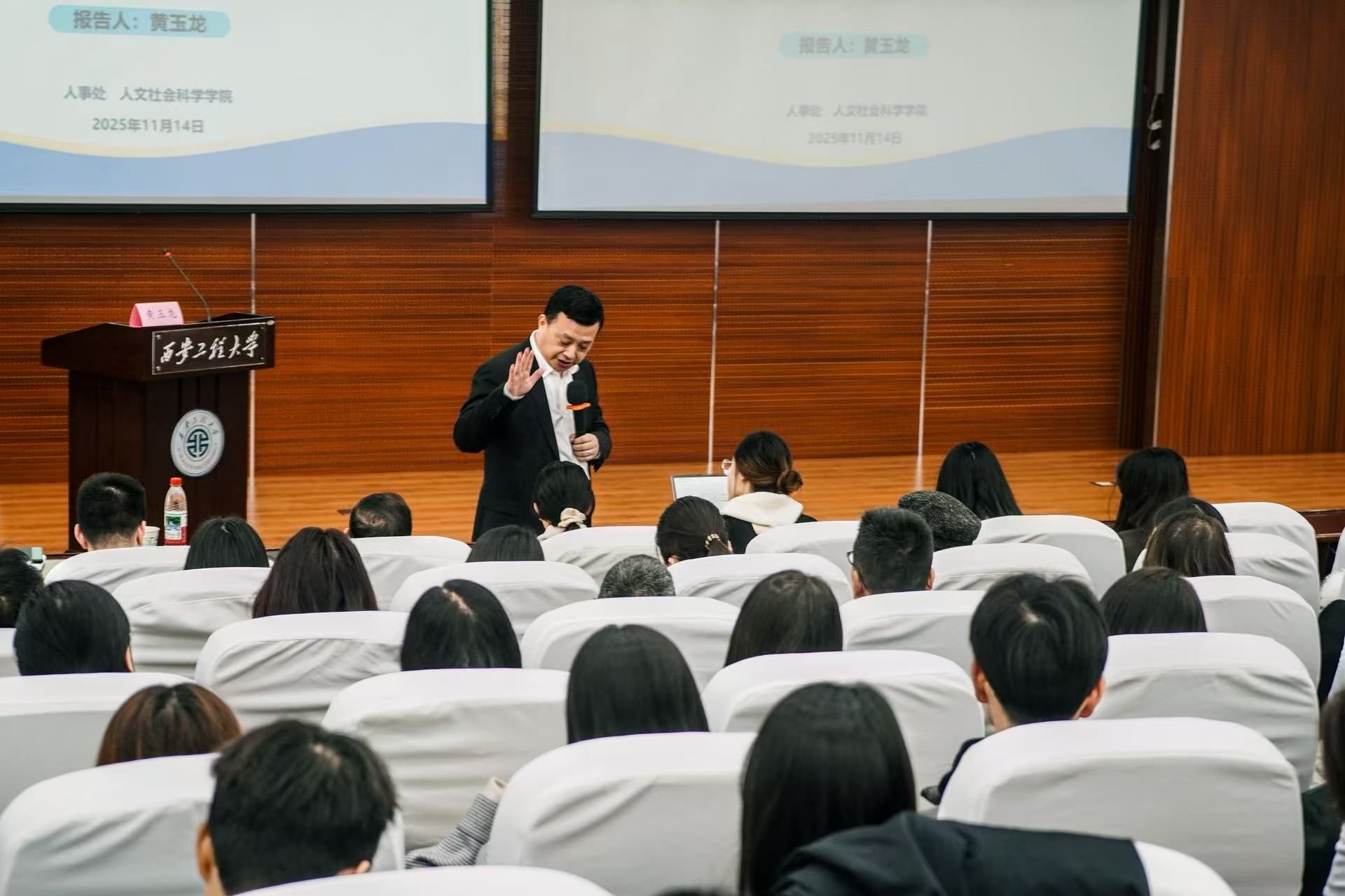 活动中,黄玉龙立足新时代国际传播格局,深入剖析了当前中国国际传播正面临的新形势、新挑战与新机遇。他指出,向世界讲好中国式现代化故事,构建更有力的国际传播体系,是时代赋予高校的重要使命。外语人、新传人、马哲人等相关学科人才需转变话语体系,锤炼“内知国情、外晓世界、融通中外”的综合素养,为实现中国文化“走出去”的传播效果,必须深入研究中国发展趋势与国际格局变化,精准把握目标受众的接受习惯。