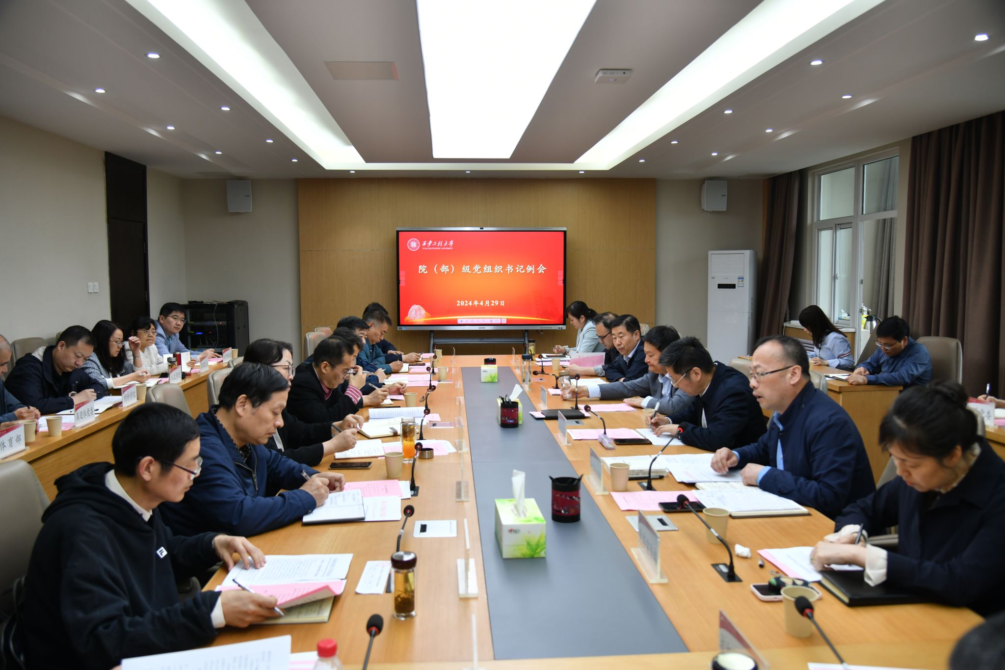 4月29日上午,校党委书记马万清在临潼校区行政楼第三会议室主持召开院(部)级党组织书记例会,安排部署近期相关工作。党委副书记、纪委书记、监察专员辛永昌,党委副书记殷永建出席会议,党委职能部门负责人、各院(部)级党组织书记参加会议。