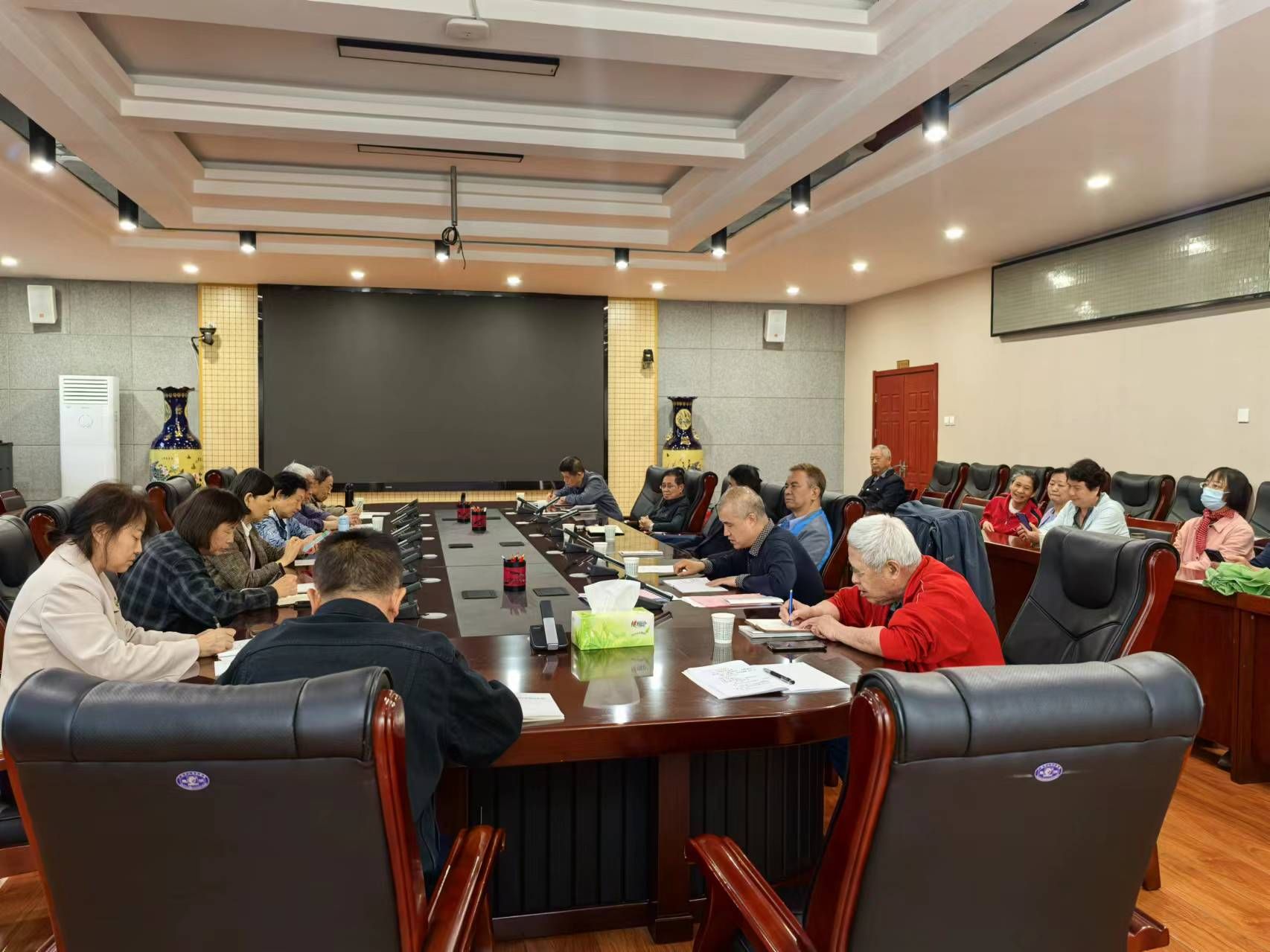 4月29日下午,在金花校区第三会议室,离退休党委召开理论中心组党纪学习教育学习会。离退休党委委员、离退休党代表、各支部书记、支部委员、老同志党员代表及离退办全体工作人员参加了会议。会议由离退休党委书记张平主持。