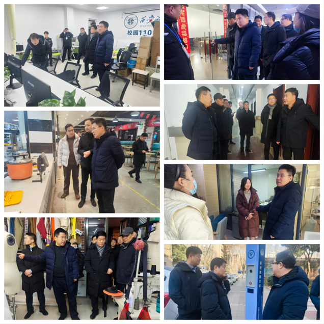 此前,学校根据省委教育工委、省教育厅进一步加强学校消防工作的紧急通知有关精神和学校领导批示要求,由校党委副书记井浩带队,于1月24日在两校区开展了寒假期间校园消防安全专项检查。检查组先后来到学生宿舍、食堂、部分学院、实验室(工作室)、校园110报警中心以及部分人员密集场所和重点要害部位,重点检查各室内场所消防安全管理情况、各单位灭火和应急疏散预案、宣传教育记录、隐患排查台账、实验室(工作室)使用记录、值班备勤安排和记录等。检查过程中,检查组仔细检查了各单位值班记录,校领导详细询问寒假期间值班情况、两校区动力保障重点要害部位消防管理情况;在实验室(工作室),校领导与在岗教职工、留校学生等亲切交谈,了解学生们的科研实验情况和离校返乡计划,提醒师生在室内要对消防安全高度警觉,不能有一丝一毫的大意;在学生宿舍和食堂,检查组查看了进出人员登记表和日常维护记录,校领导强调作为学生起居、饮食的人员密集场所,要严格执行消防安全标准,全力维护师生的生命财产安全;在校园110报警中心,校领导对两校区的监控覆盖情况表示肯定,同时要求能够做到一旦有突发情况可以第一时间响应,第一时间处置,严守校园安全底线。