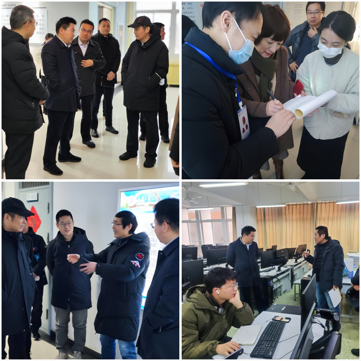 1月15日全天,由校领导井浩、辛永昌带队,校稳定安全工作委员会“一办六组”成员单位组成的工作组分别在两校区各学院和部分重点要害部位开展督查检查。在临潼校区,检查组先后来到文体馆、环化学院、城市学院、计算机学院、机电学院、电信学院、理学院和工训中心,认真检查各单位寒假期间值班安排和实验室、场地使用管理情况,校领导详细询问了各学院寒假留校研究生和延迟返乡学生情况,强调要进一步加强实验室安全管理,严格落实导师责任制和辅导员值班值守,加强对学生的关心关爱,充实留校学生的寒假生活,畅通学生表达诉求的通道,全心全意解决学生的急难愁盼。随后检查组来到锅炉房、学生宿舍和学生食堂,检查消防安全管理、动力运行、宿舍安全、食品卫生等情况,校领导着重了解寒假期间校园供暖、食堂餐品供应情况,同时强调,近日西安雨雪天气较多,降温幅度较大,要进一步加强供暖和餐饮保障,让学生感受到来自学校的“温暖”。
