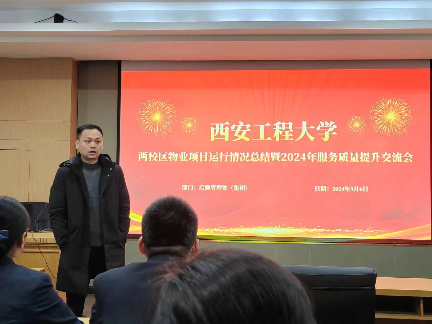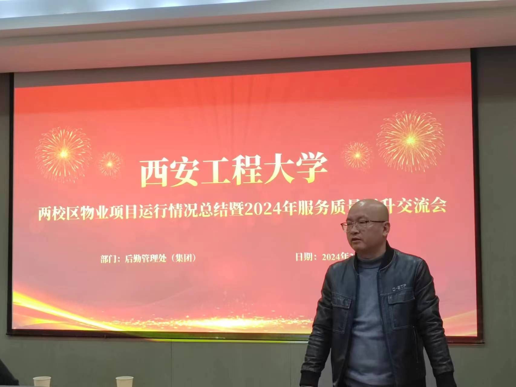 后勤管理处(集团)处长张峰对物业公司上学期工作予以肯定,特别是在教育部重点实验室复评、汉服研究院新闻发布会等重大活动中能够积极配合学校做好服务保障给予表扬。张峰强调,要从细节着手不断改进完善服务标准;树立校园环境大管家意识,以师生为本,梳理企业良好品牌形象;加强与学校常态沟通,共同服务好师生学习工作生活。