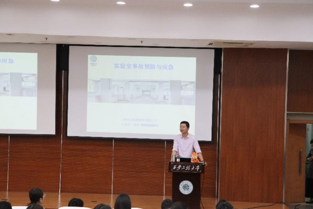 5月21日,实验室管理处在临潼、金花两校区分别举办实验室事故预防及应急培训安全讲座,实验室管理处处长高飞、实验室管理处工作人员,纺织科学与工程学院、环境与化学工程学院、材料工程学院、机电工程学院、理学院、城市与环境工程学院等教学单位500余名学生参加了培训,会议由实验室管理处副处长刘许主持。