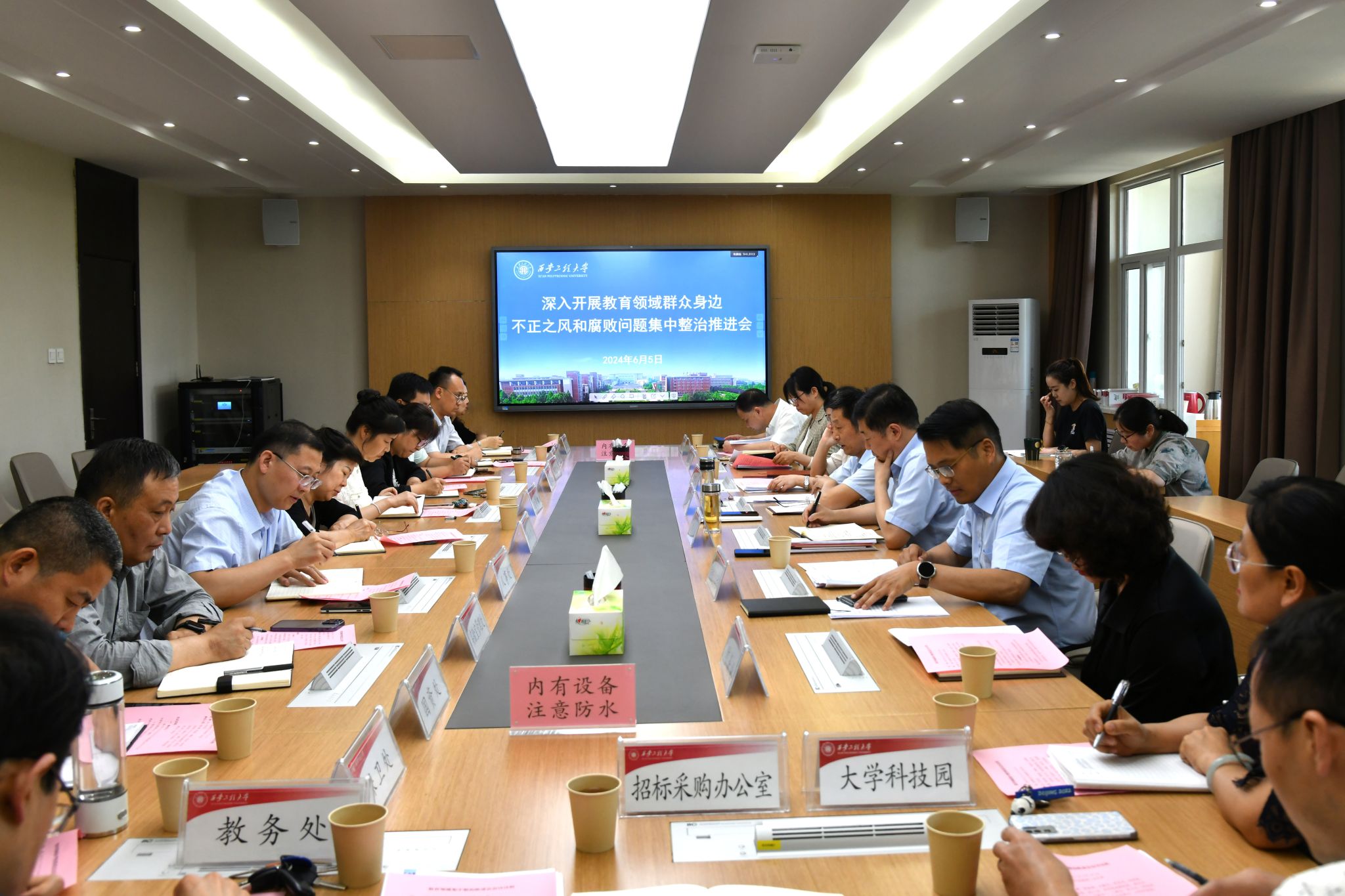 会议分为两个阶段。首先集体学习了中央纪委国家监委、陕西省纪委监委关于部署开展群众身边不正之风和腐败问题集中整治工作相关会议及重要讲话精神。在工作部署推进阶段,校纪检监察机构负责人代表学校集中整治专班办公室对学校集中整治工作方案及近期推进情况进行了汇报;财务处、科技研究院、后勤管理处负责人分别代表4个专项工作组汇报了各自牵头负责的集中整治工作部署及进展情况。