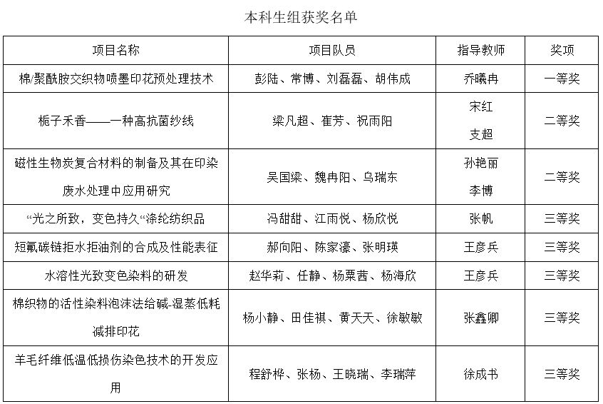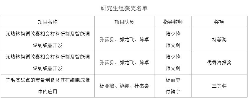 6月15日,第五届全国大学生绿色染整科技创新大赛在青岛举行,AC米兰纺织科学与工程学院师生团队参加了比赛,并获研究生组特等奖1项、三等奖1项、优秀海报1项;获本科生组一等奖1项、二等奖2项、三等奖5项。